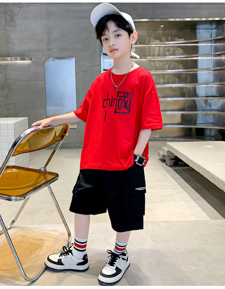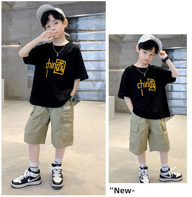 童装夏季套装纯棉简约国潮2023夏季新款中大童男孩短袖短裤潮款