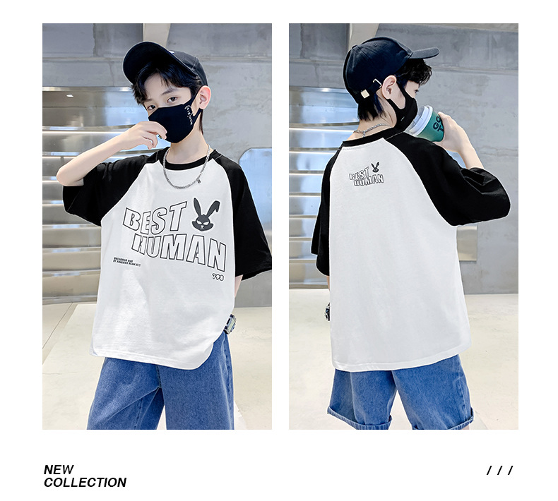 男童短袖T恤纯棉拼色百搭2023夏季新款中大童男孩短袖透气吸湿