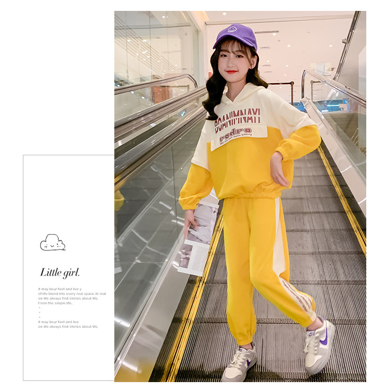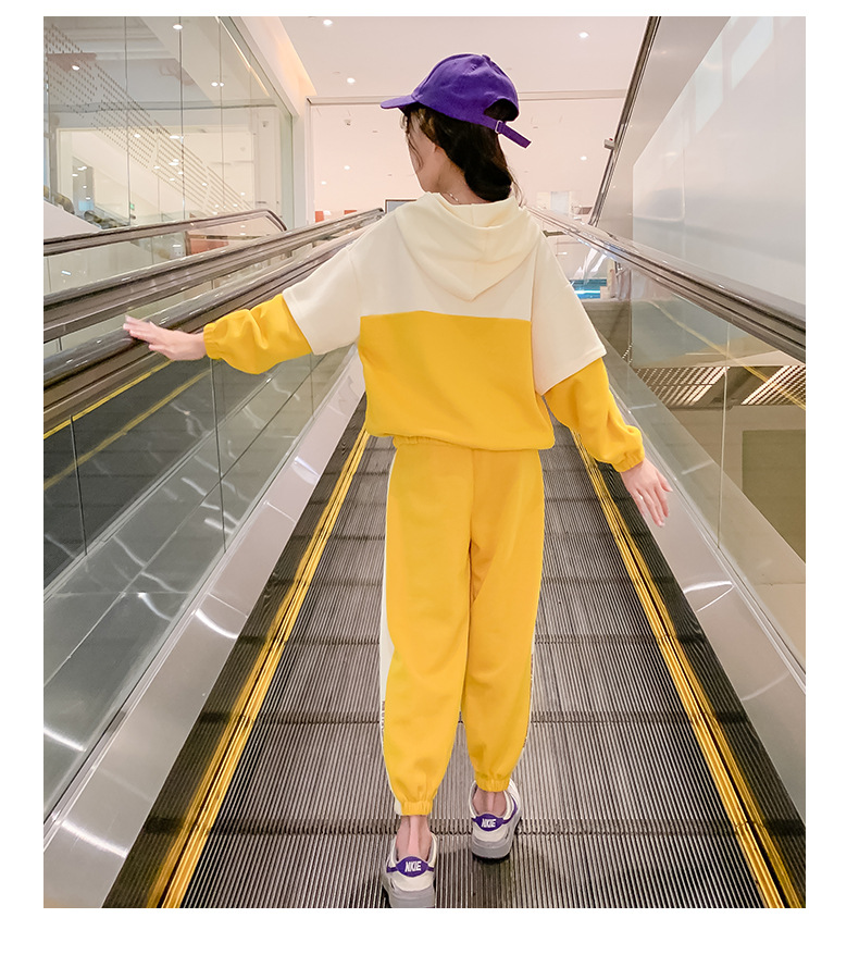 女童春款套装纯棉拼色2023春季新款中大童女孩卫衣卫裤两件套潮款