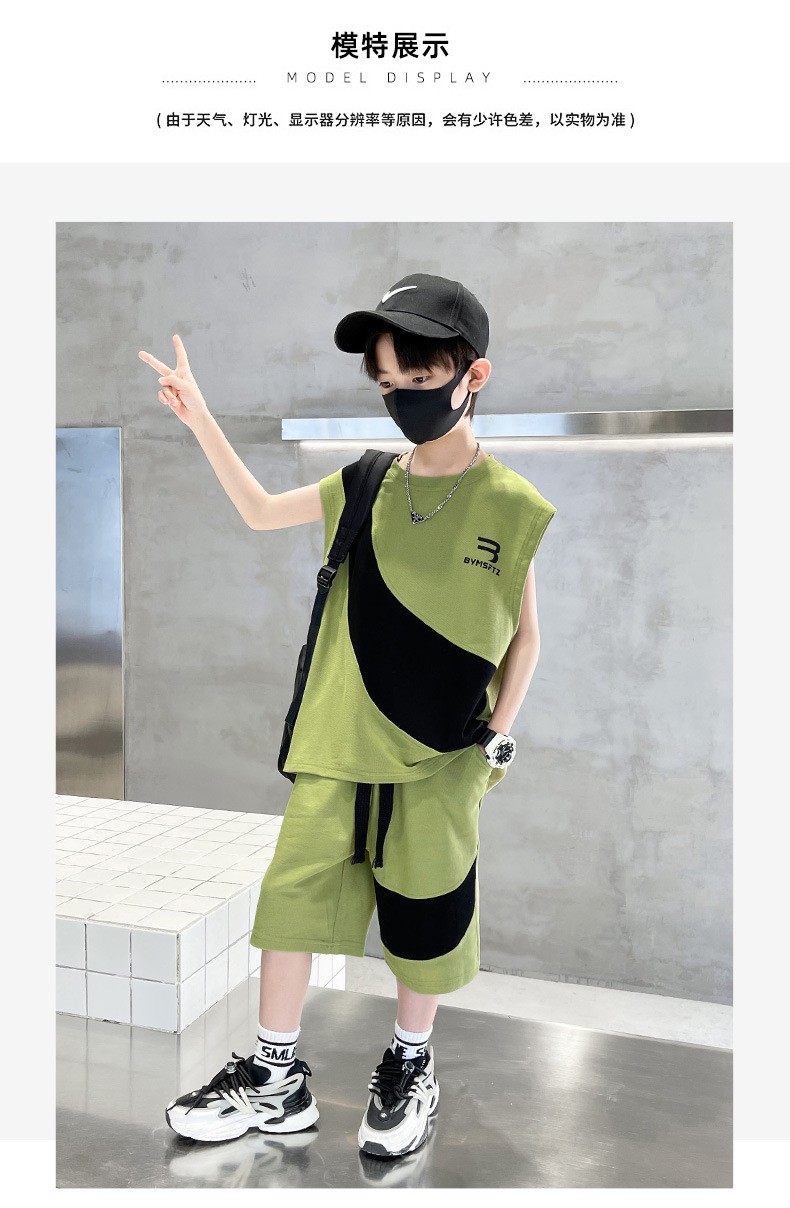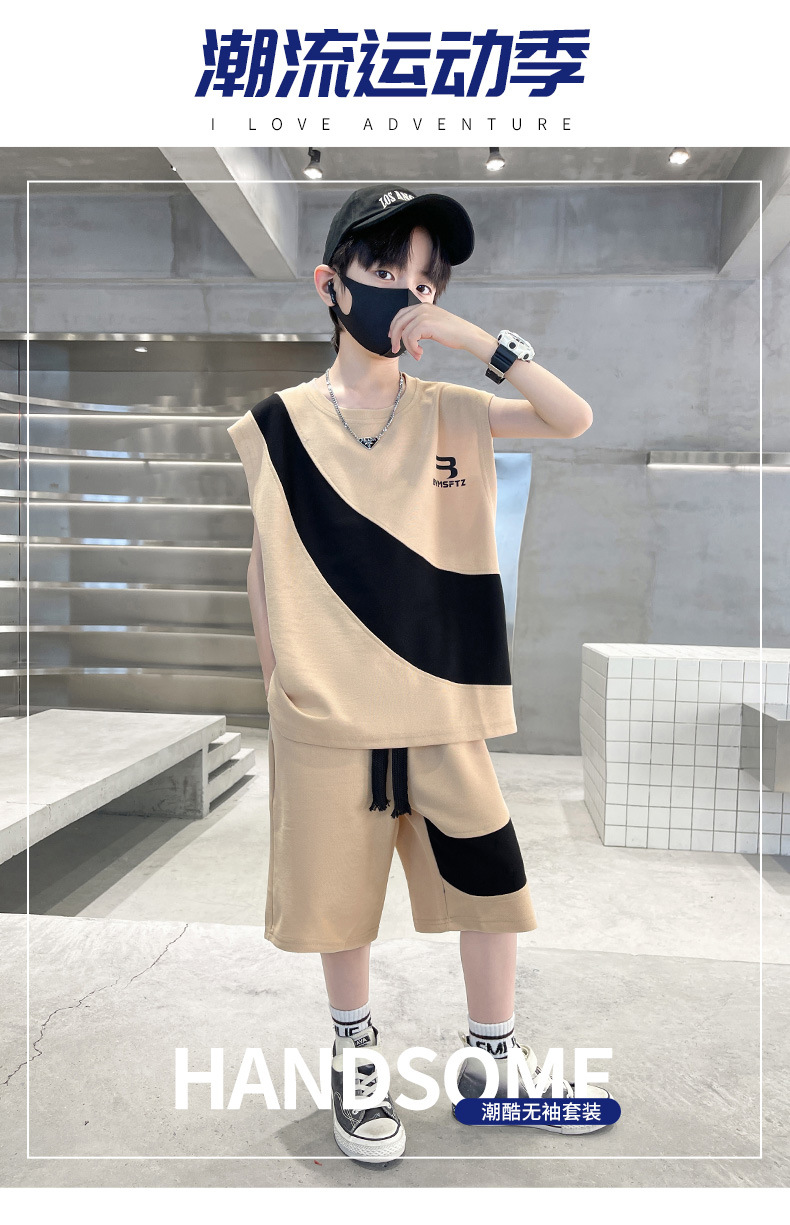 男孩夏季套装纯棉透气吸湿2023新款中大童男童背心短裤两件套拼色