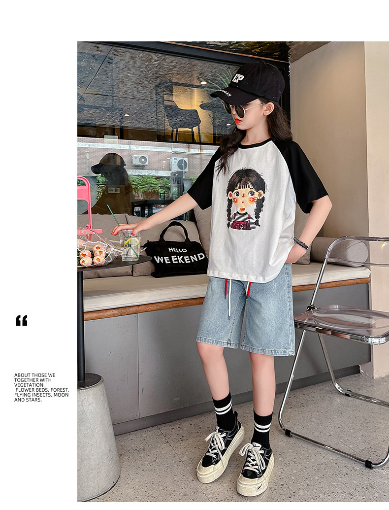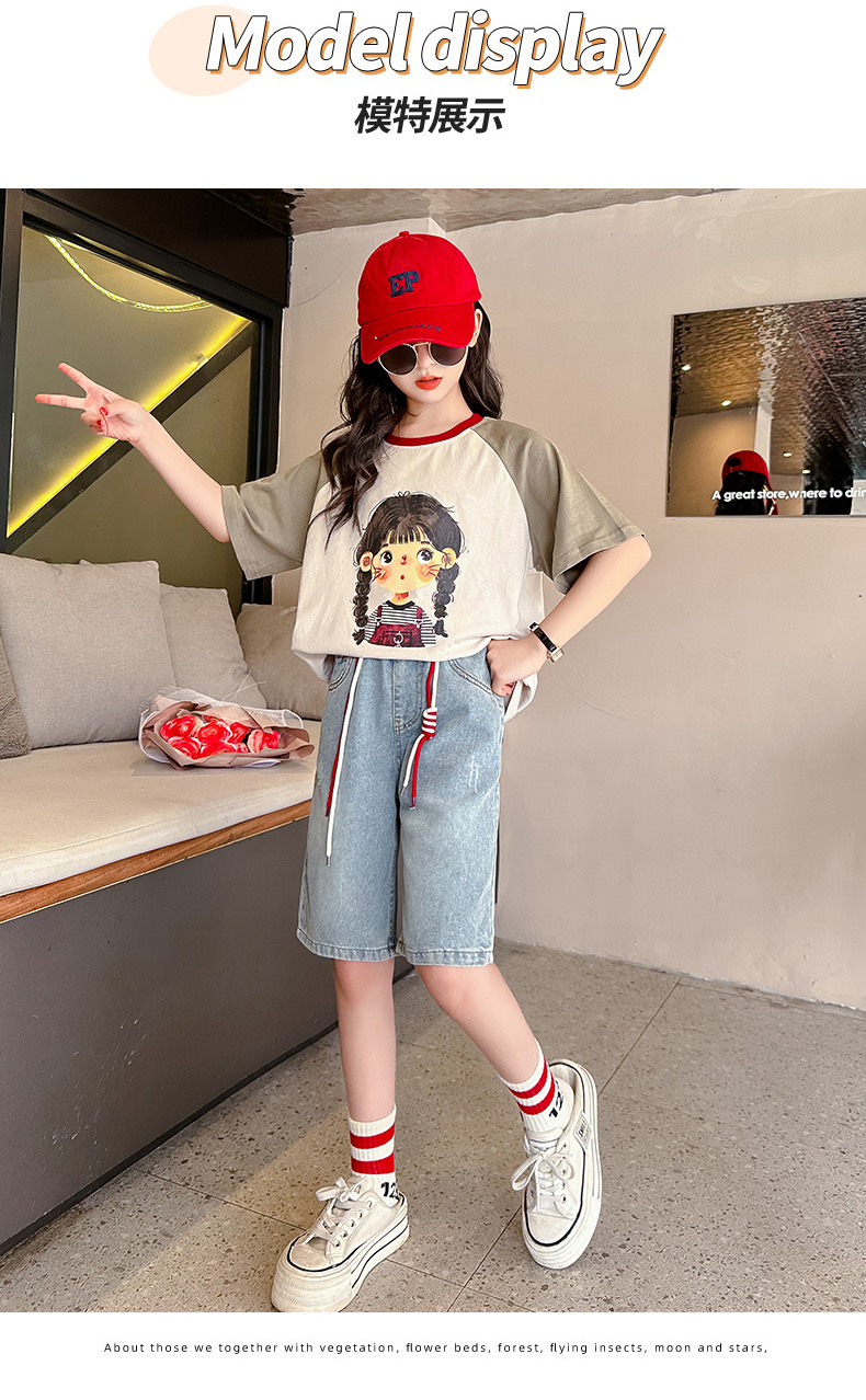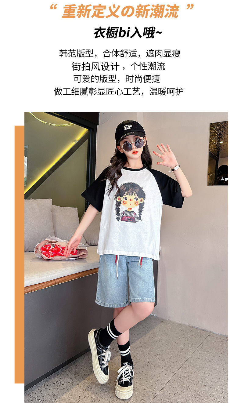 女孩夏季套装透气吸湿2023新款大女童纯棉短袖短裤两件套可爱女孩