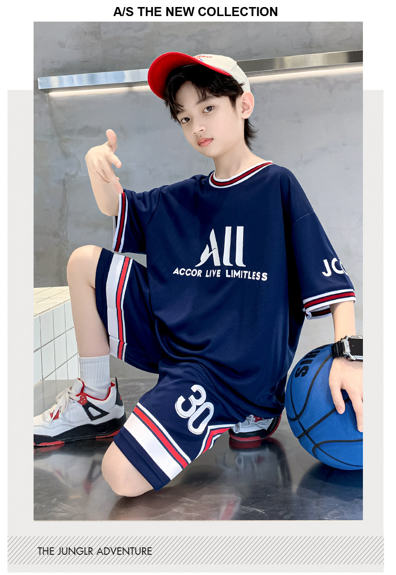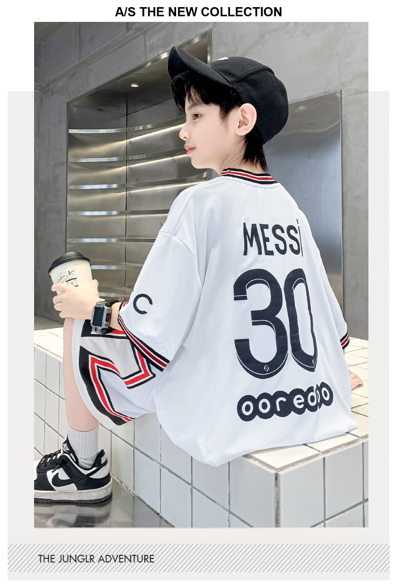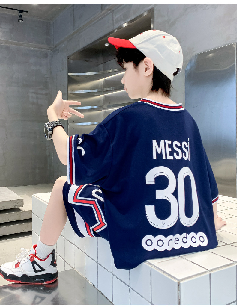 男童夏季运动套装速干透气2023夏新款大童短袖短裤运动服套装梅西