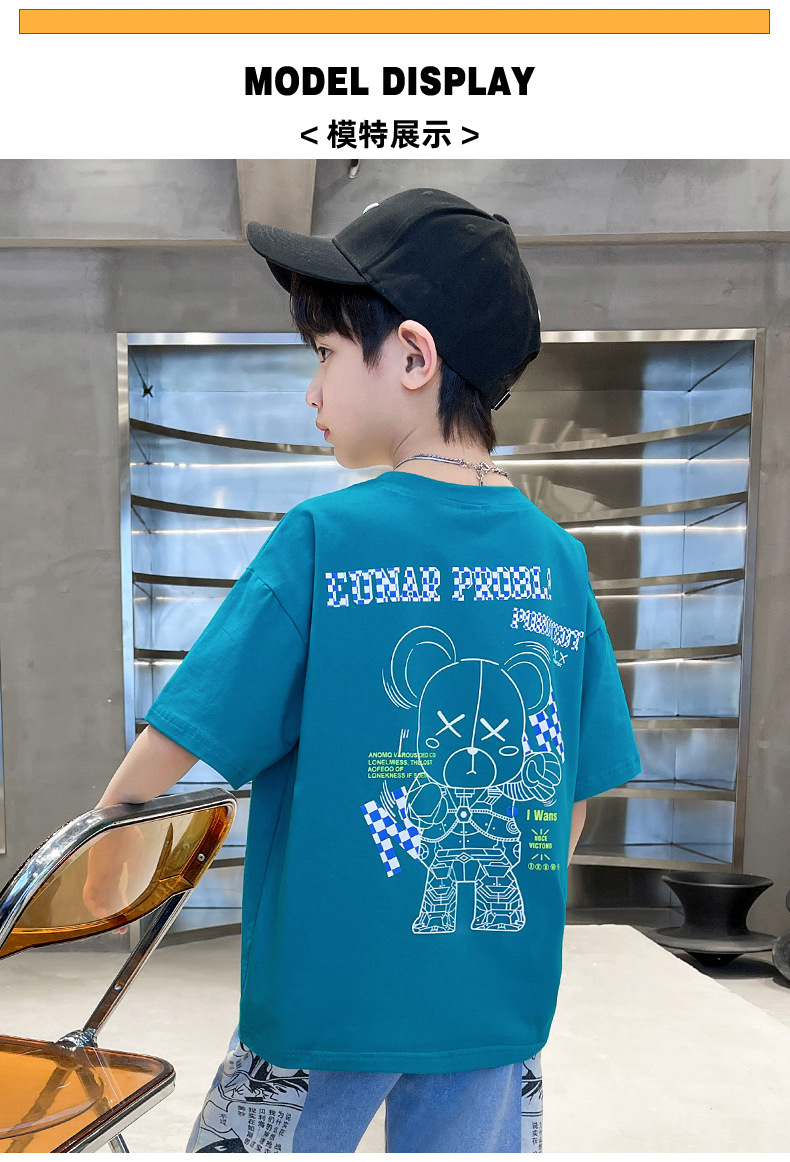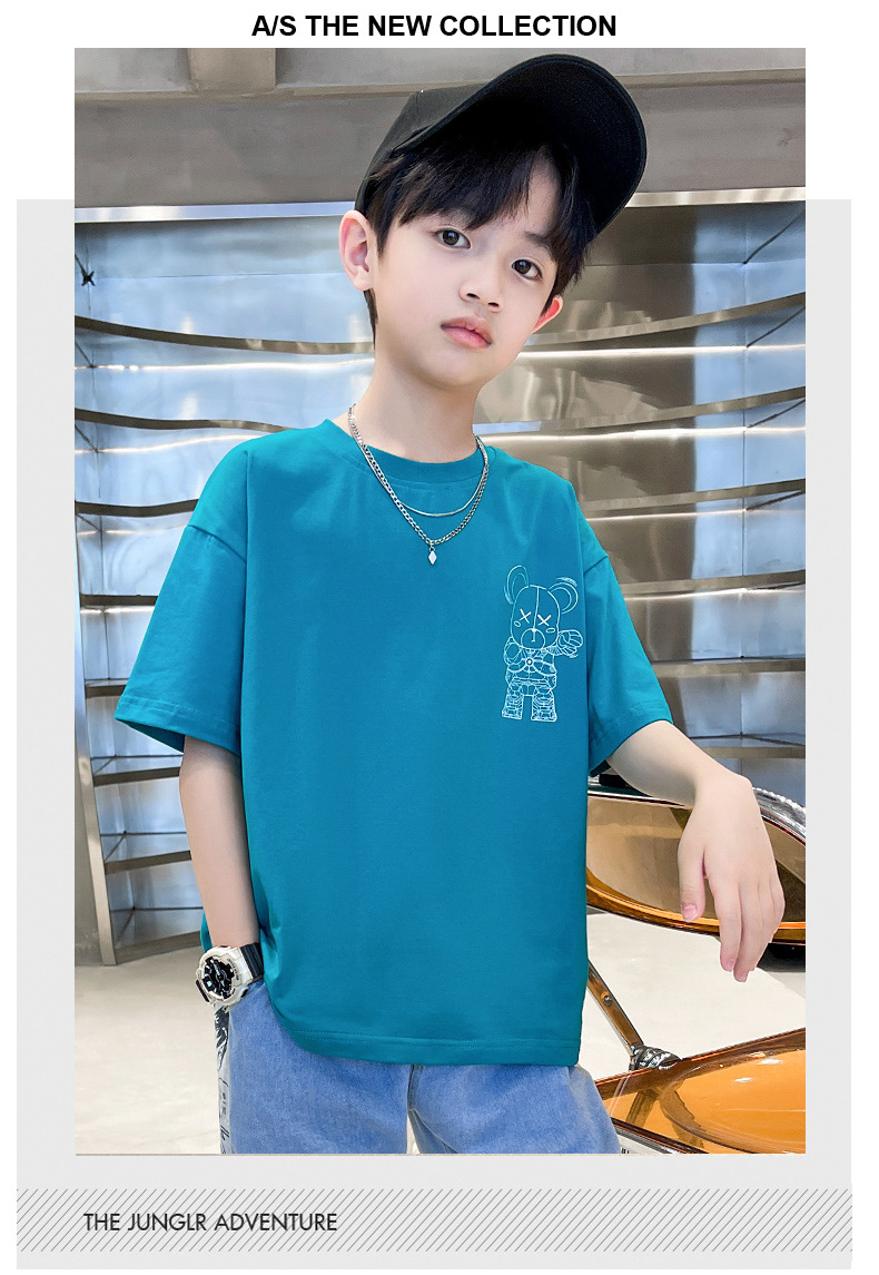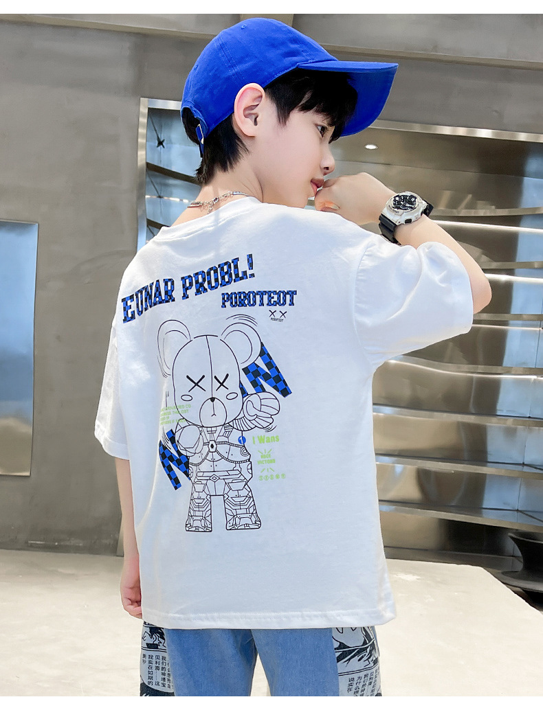 男童夏季套装纯棉韩版潮款2023夏季新款中大童男孩短袖短裤卡通熊