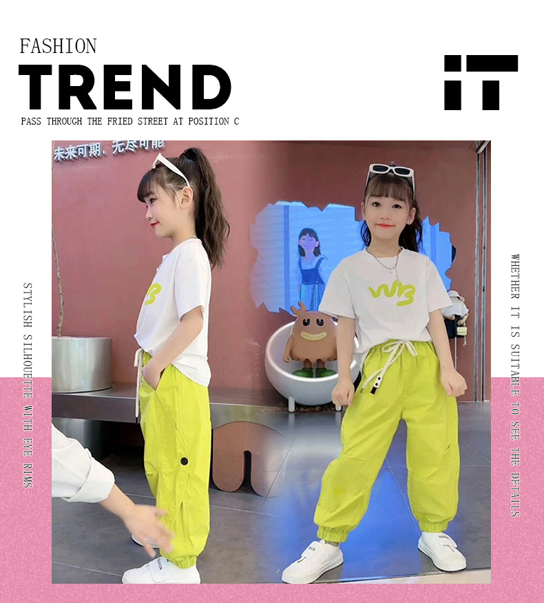 女童夏季套装纯棉韩版2023夏季新款中大童女孩短袖工装裤两件套潮