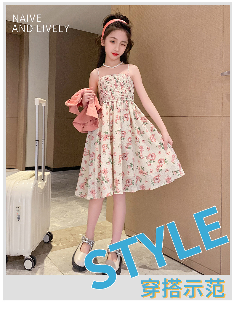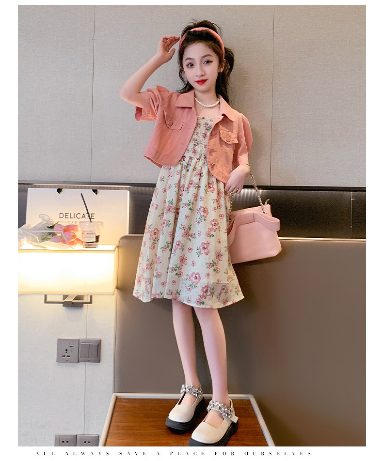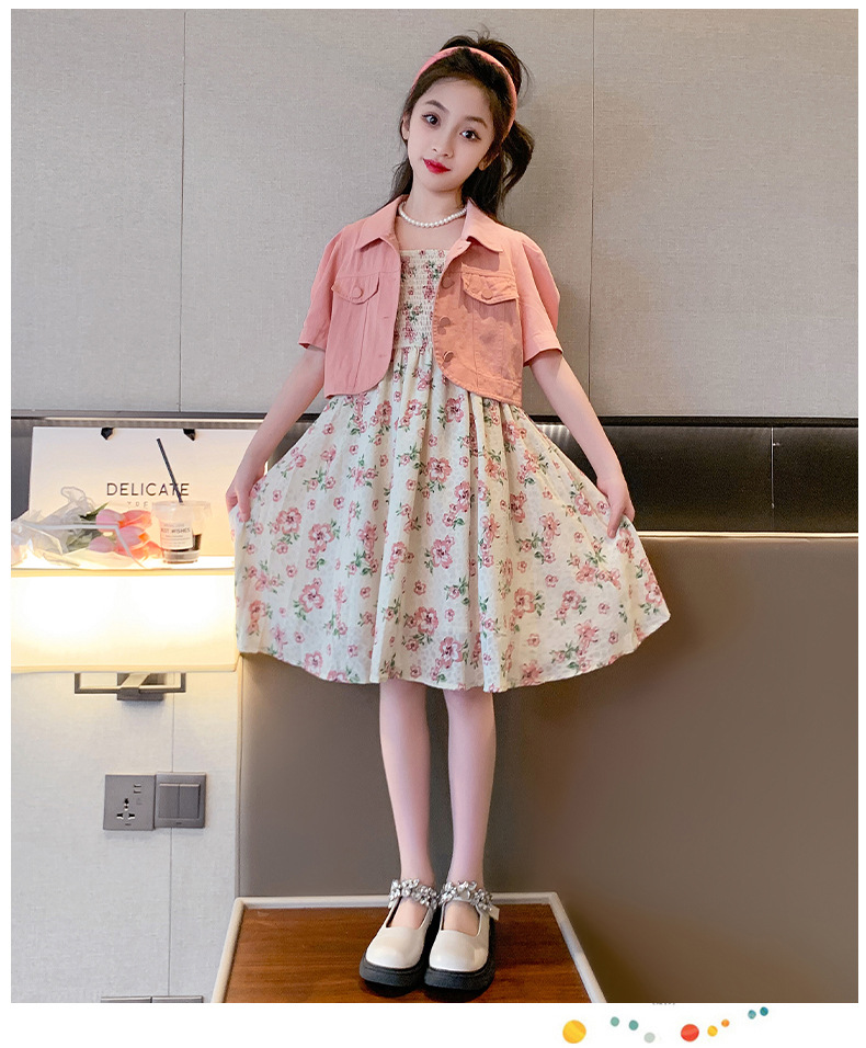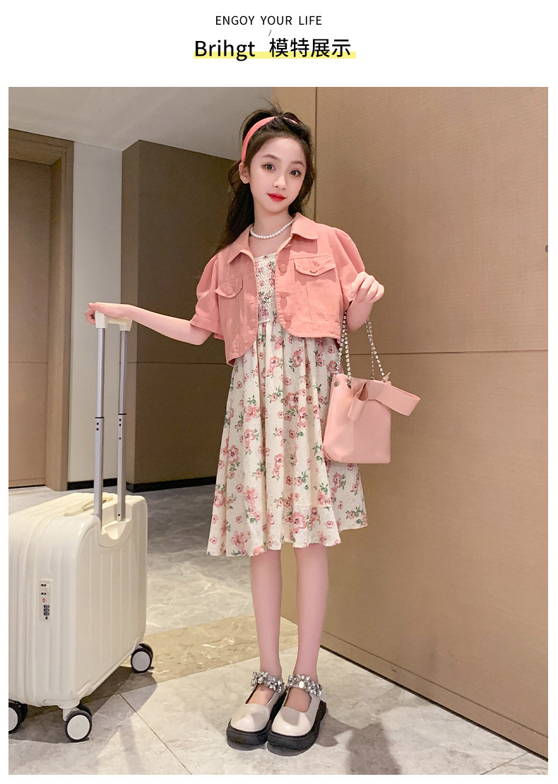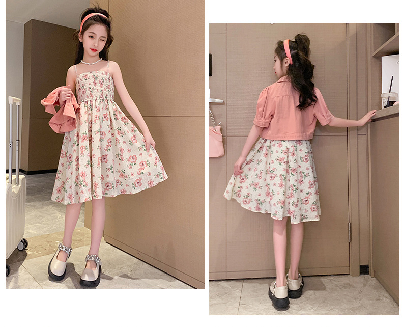 女童夏季套装吊带裙开衫两件套2023夏季新款中大童女孩碎花裙套装