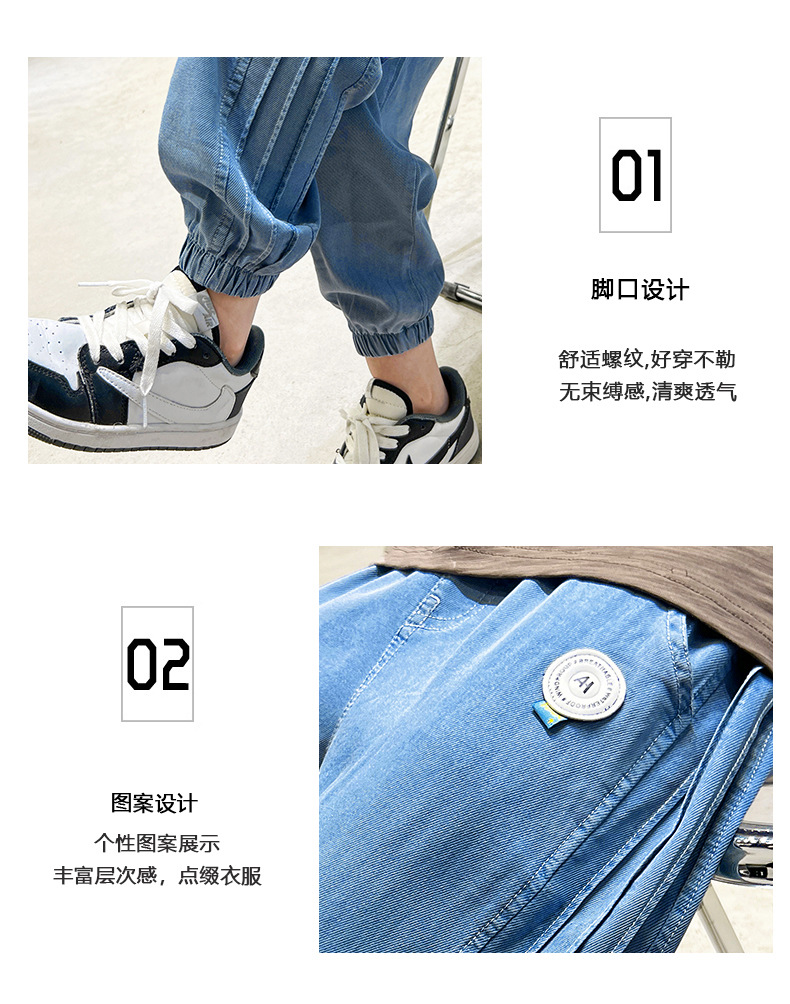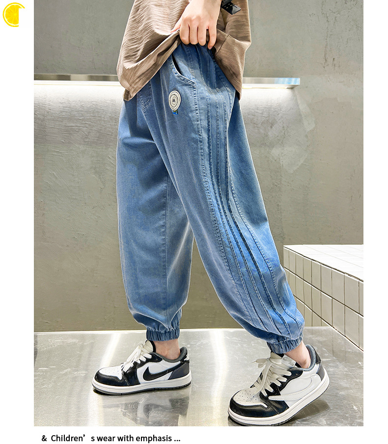 男童夏季裤子天丝牛仔裤轻薄透气2023夏季新款男孩冰丝防蚊裤薄款
