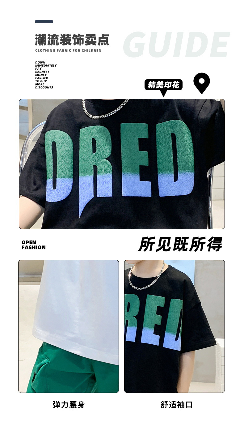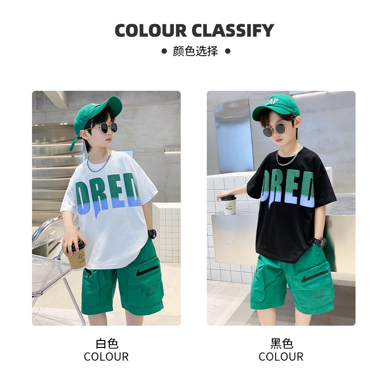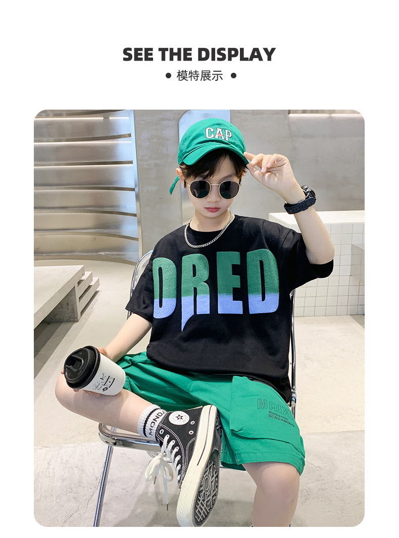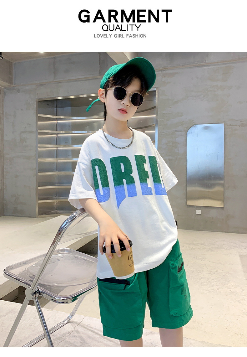 男童夏季套装纯棉韩版潮款2023夏季新款中大童男孩短袖短裤大字母