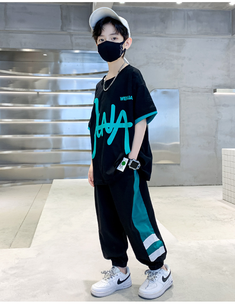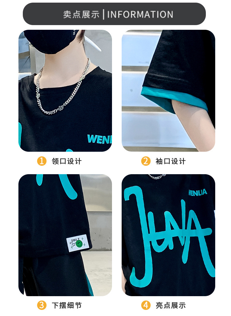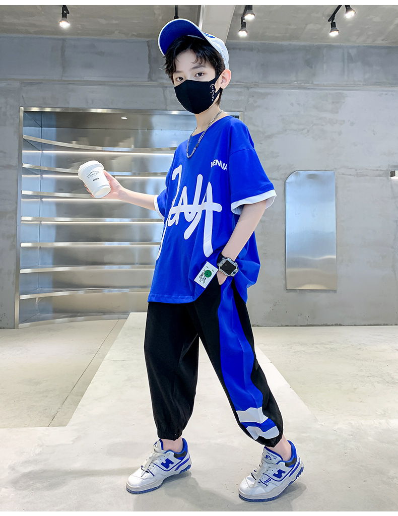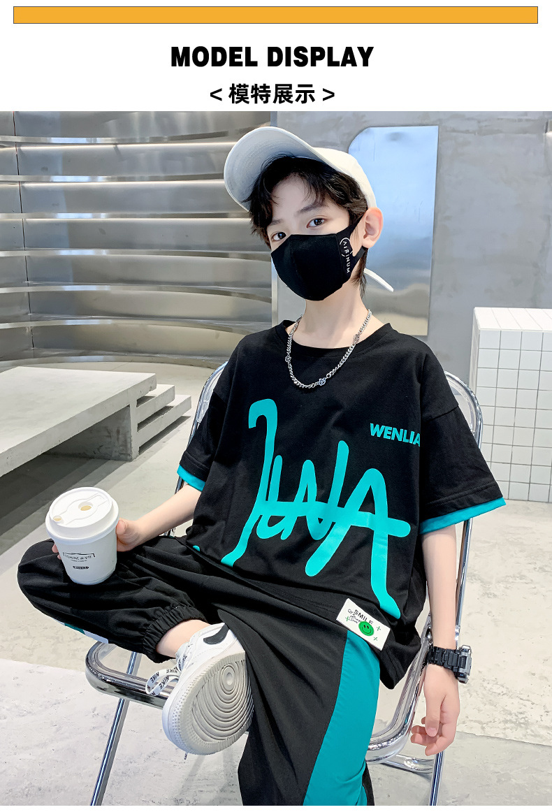 男童夏季套装韩版2023夏季新款中大童男孩纯棉短袖冰丝短裤涂鸦