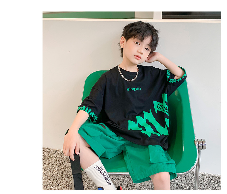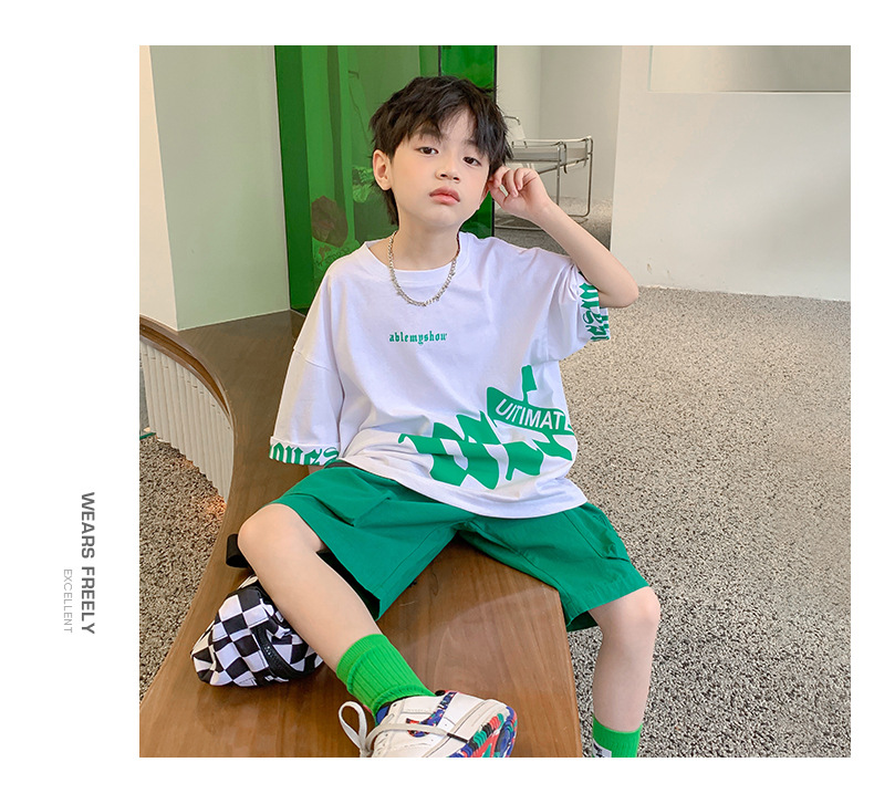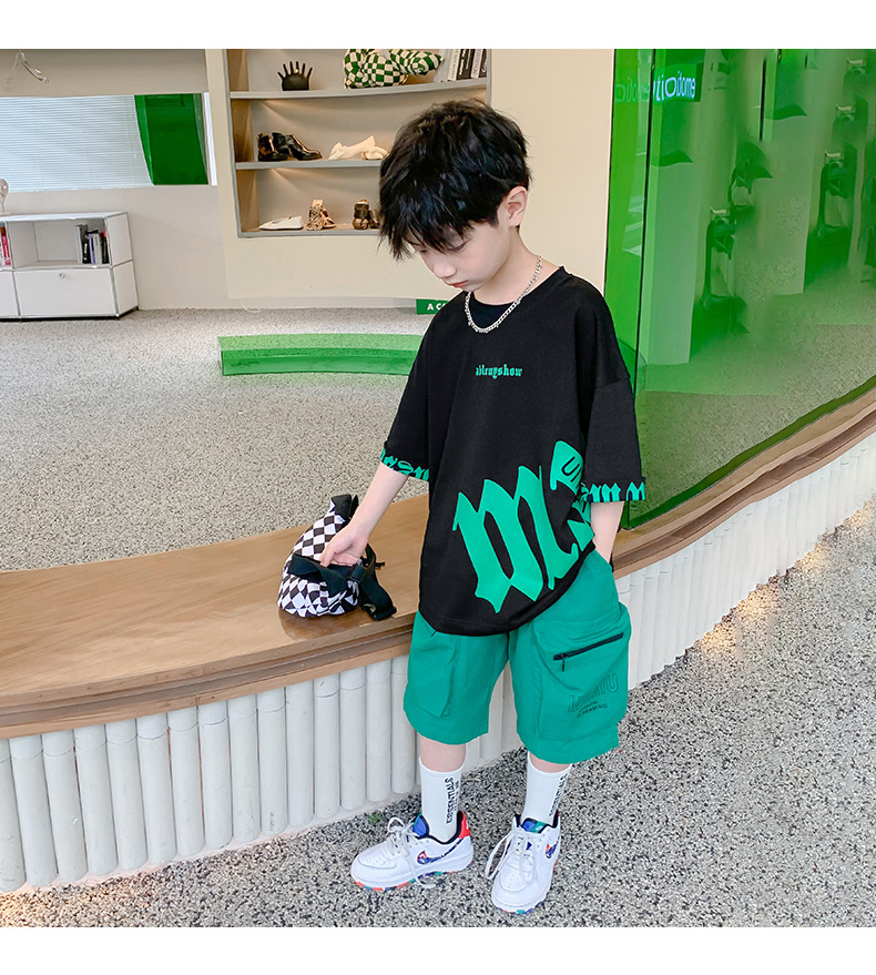 男童夏季套装纯棉韩版潮款2023夏季新款中大童男孩短袖短裤MX套装
