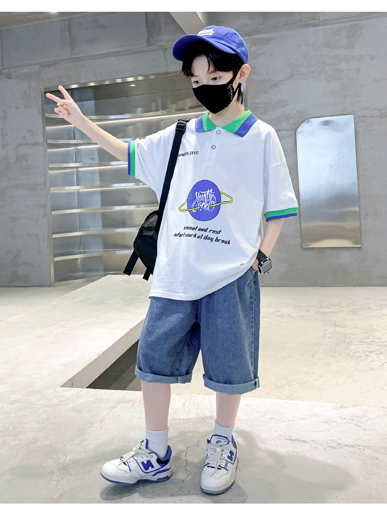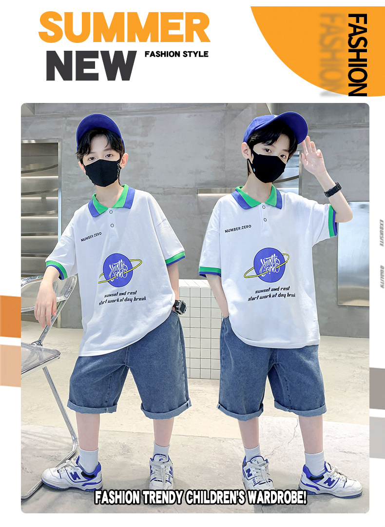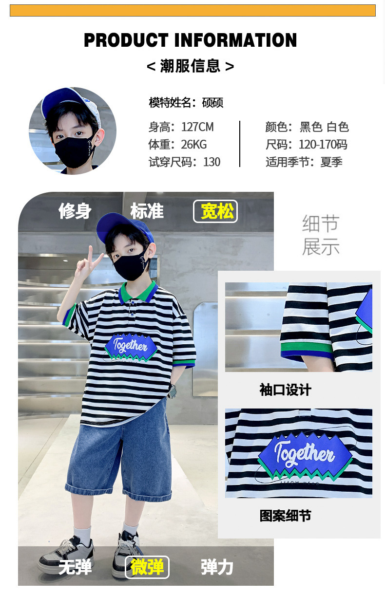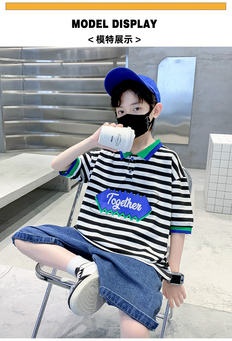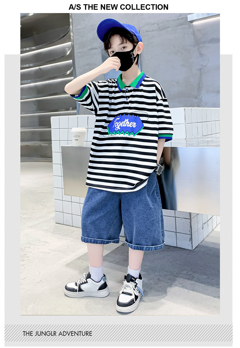 男童夏季套装纯棉polo衫潮款2023夏季新款中大童男孩短袖短裤条纹