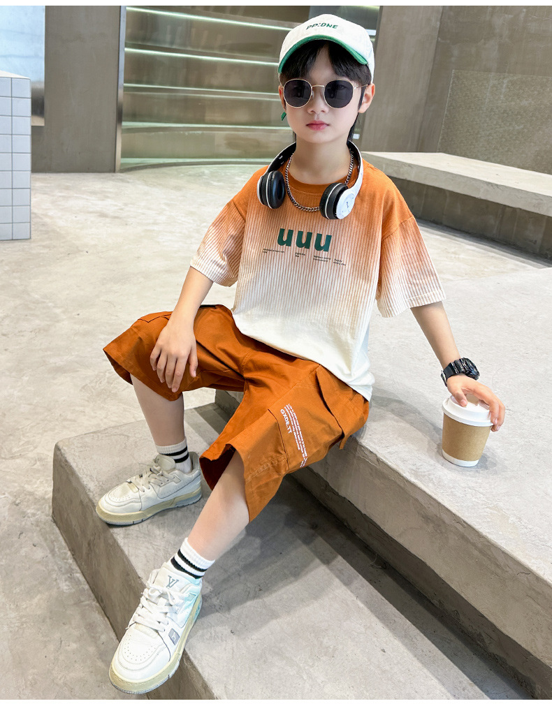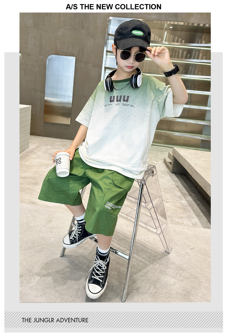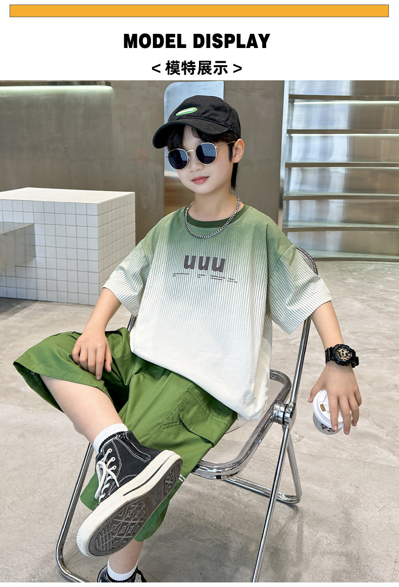 男童夏季韩版套装纯棉2023夏季新款中大童男孩短袖短裤条纹炸街潮
