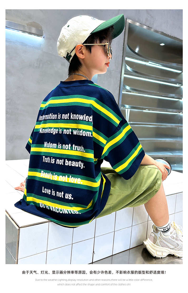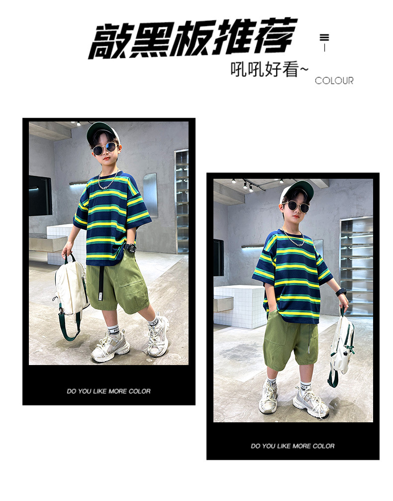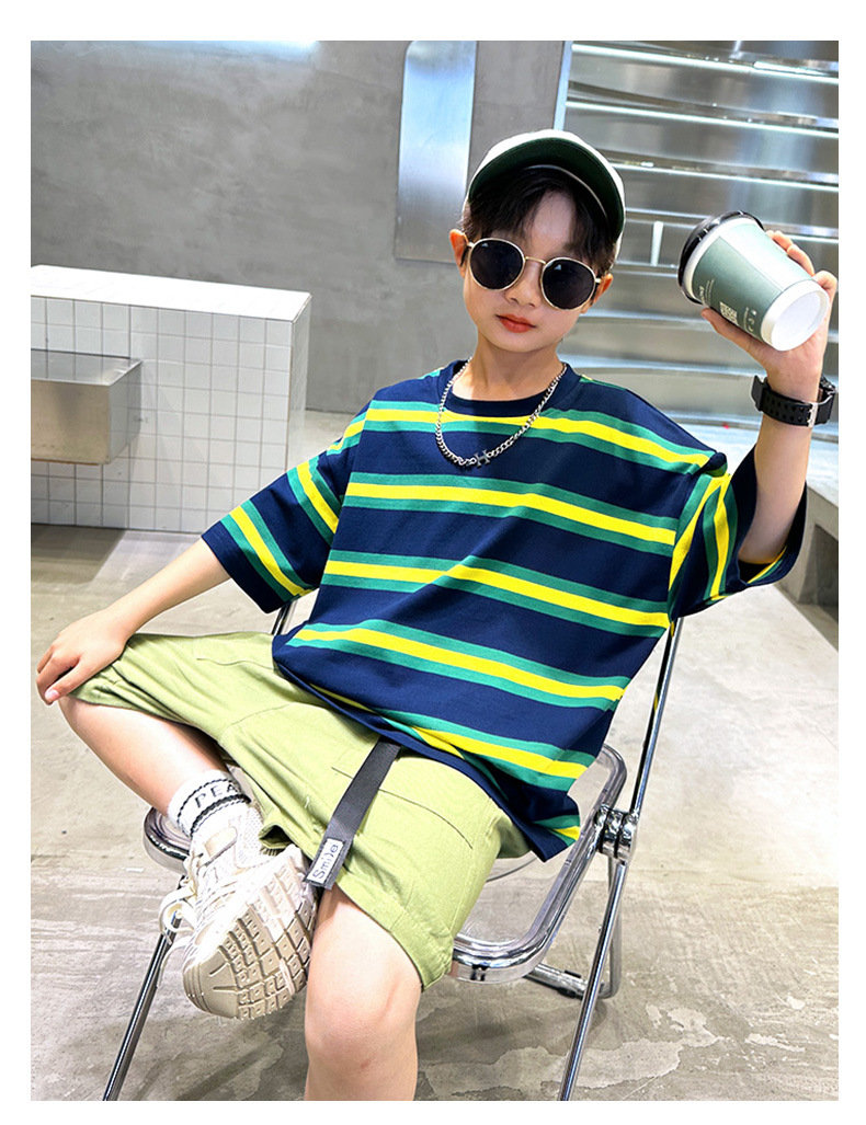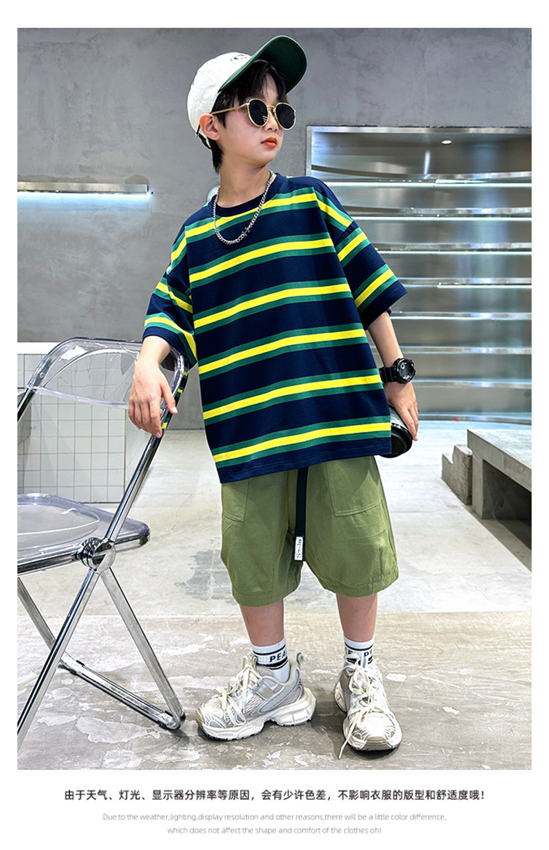 男童夏季套装纯棉韩版潮款2023夏季新款中大童男孩条纹两件套