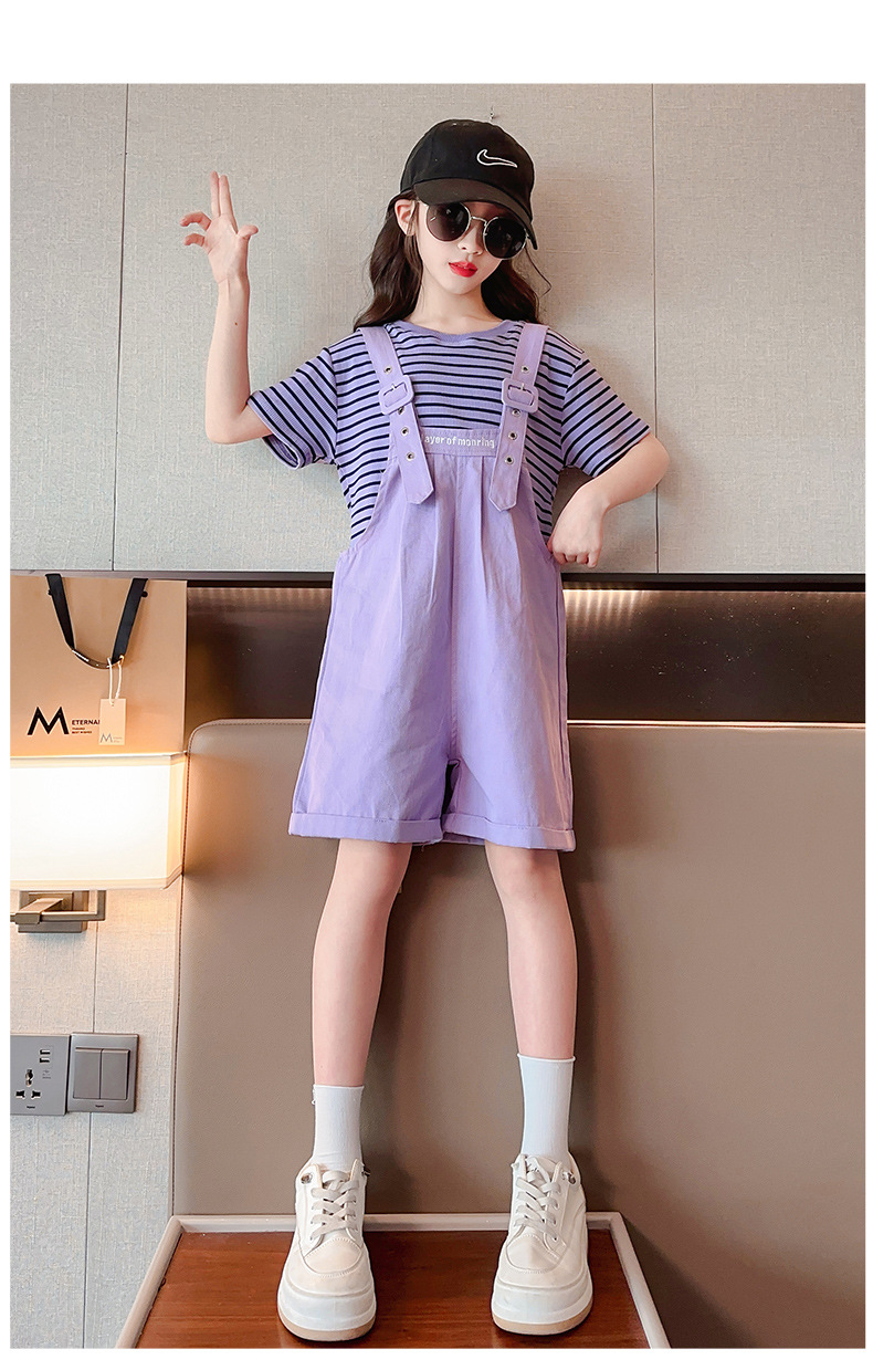 女童夏季套装背带裤T恤两件套2023夏新款中大童女孩时尚潮款套装