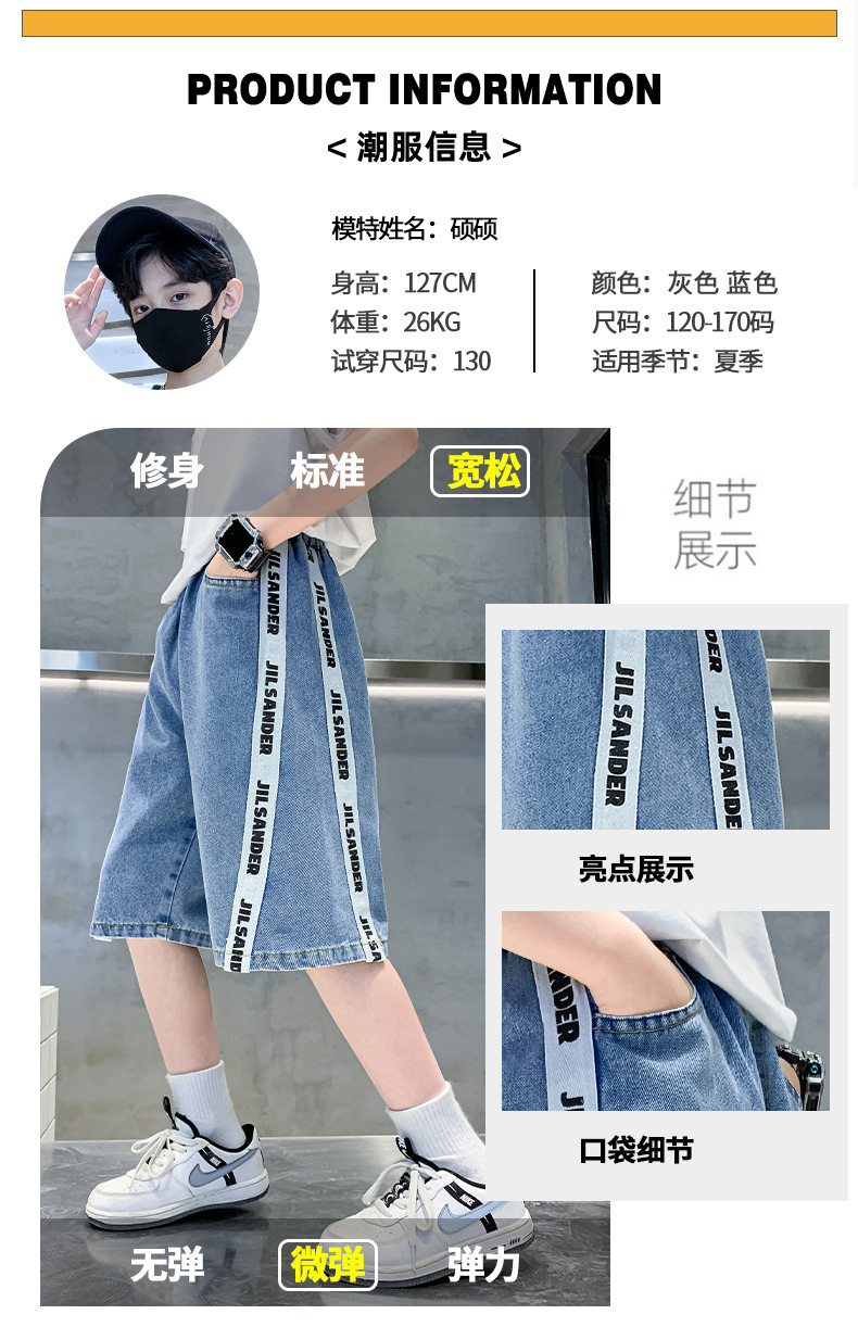 男童牛仔短裤夏季吸湿透气2023夏季新款中大童男孩五分裤简约百搭