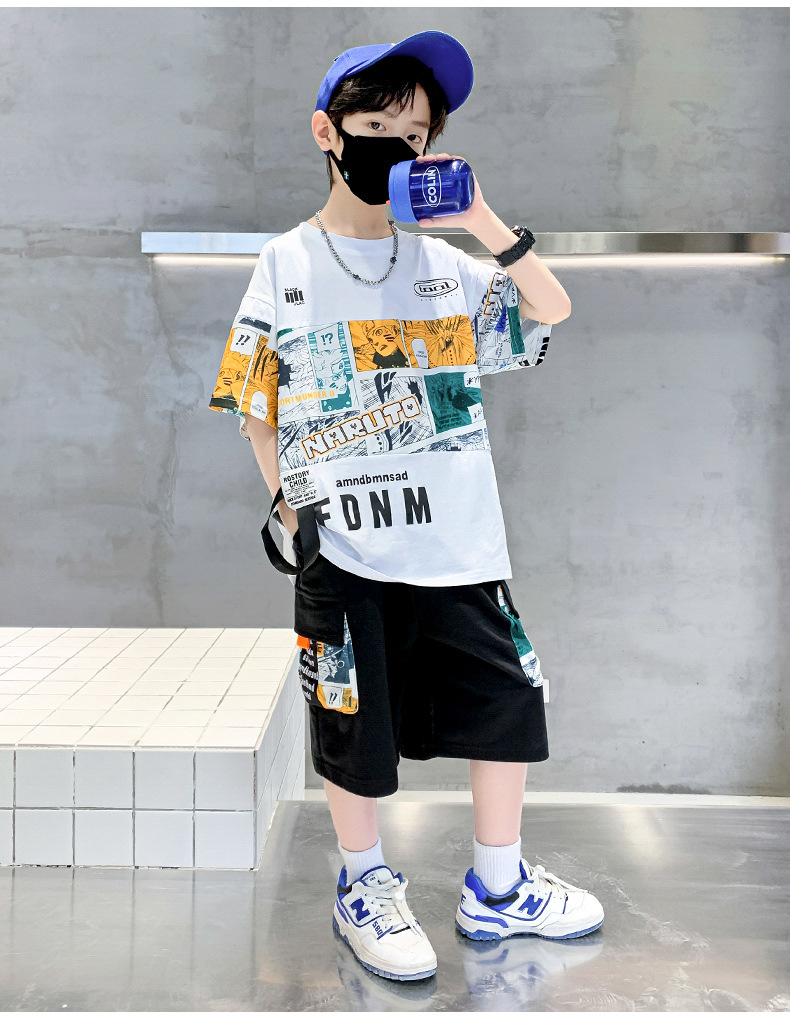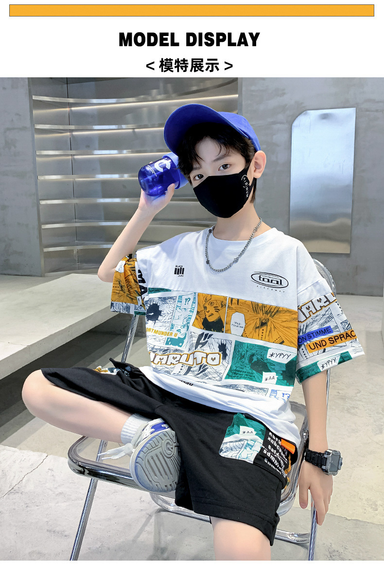 男童夏季套装纯棉韩版漫画2023夏季新款中大童男孩短袖短裤韩版