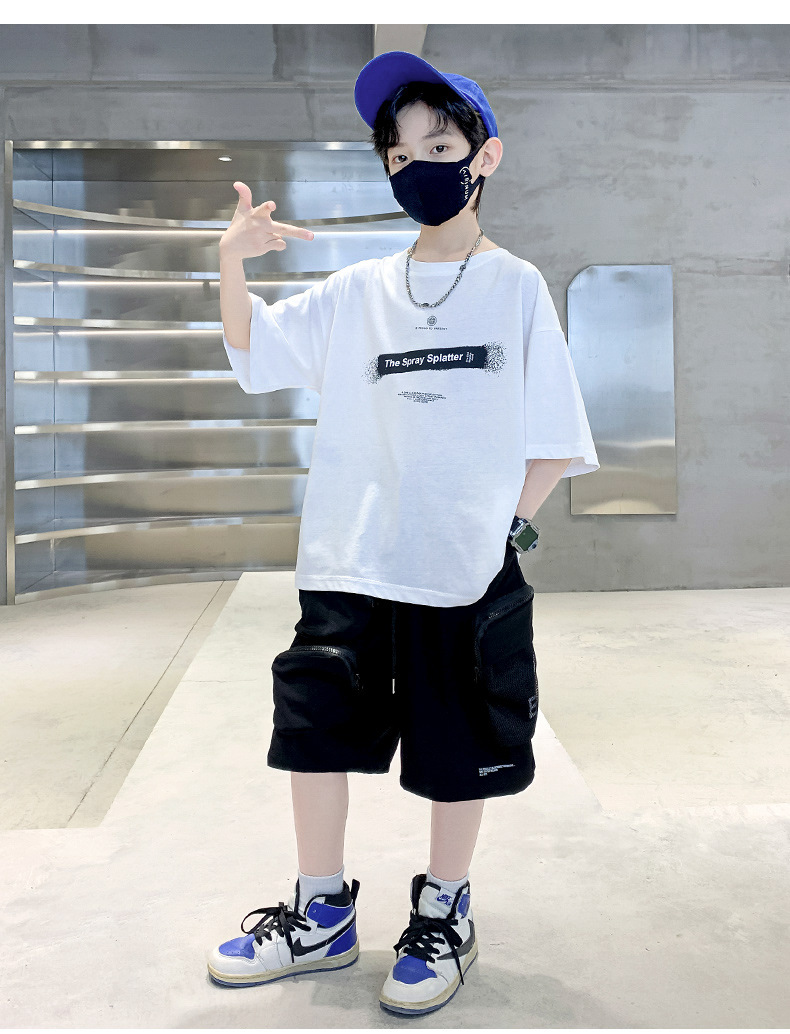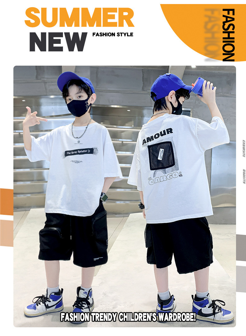 男童夏季套装纯棉韩版潮款2023夏季新款中大童男孩短袖短裤炸街