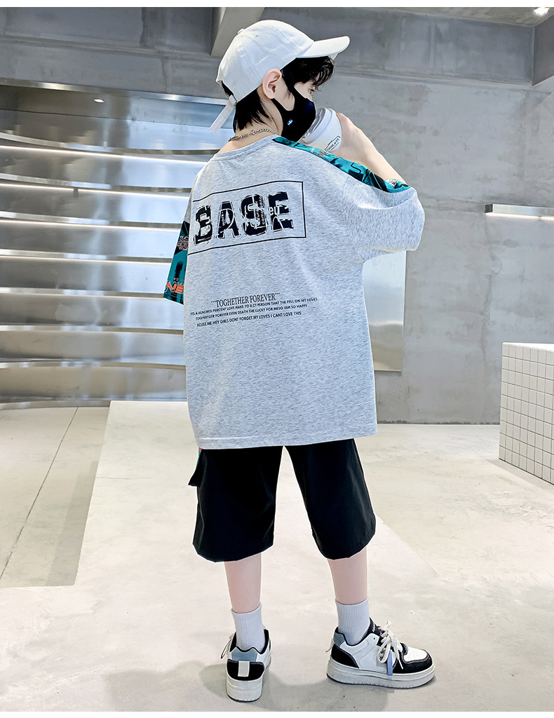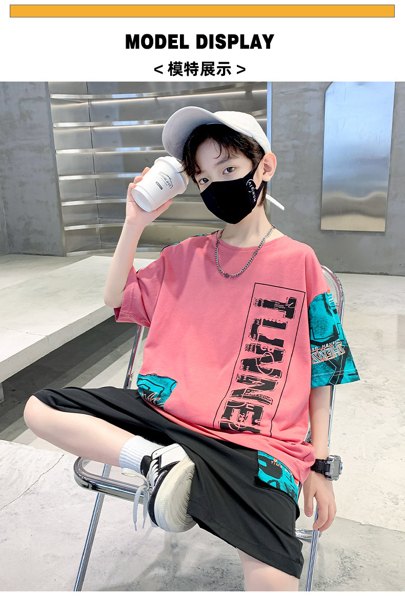 男童夏季套装纯棉韩版潮款2023夏季新款中大童男孩短袖短裤大字母