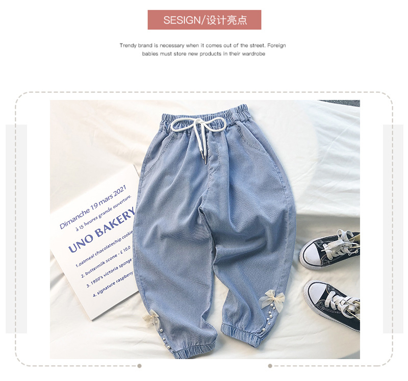 女童夏季裤子天丝牛仔裤薄款2023夏季新款女孩冰丝防蚊裤轻薄透气