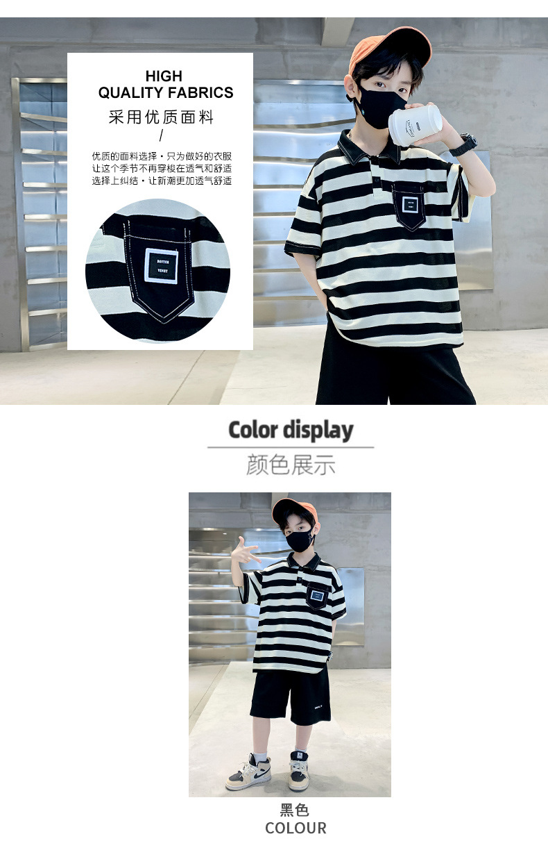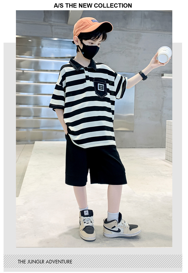 男童夏季套装纯棉polo衫潮款2023夏季新款中大童男孩短袖短裤条纹