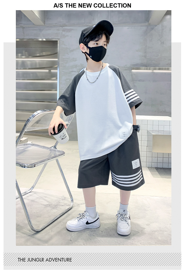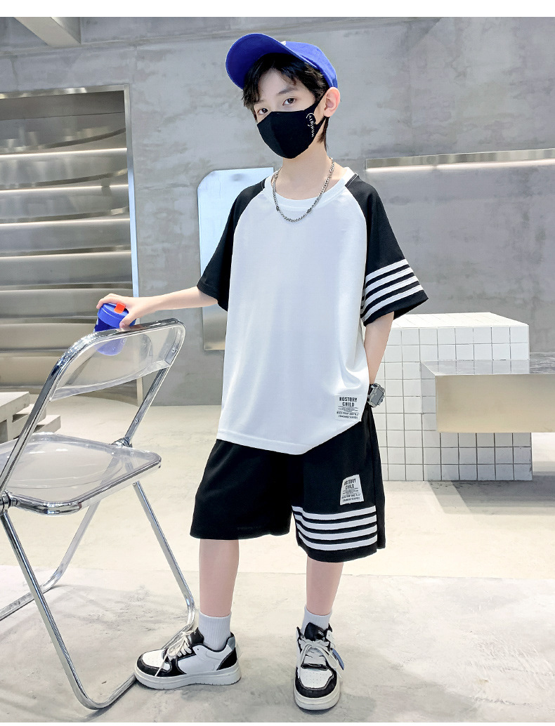 男童夏季套装纯棉韩版拼色潮款2023夏季新款中大童男孩短袖短裤