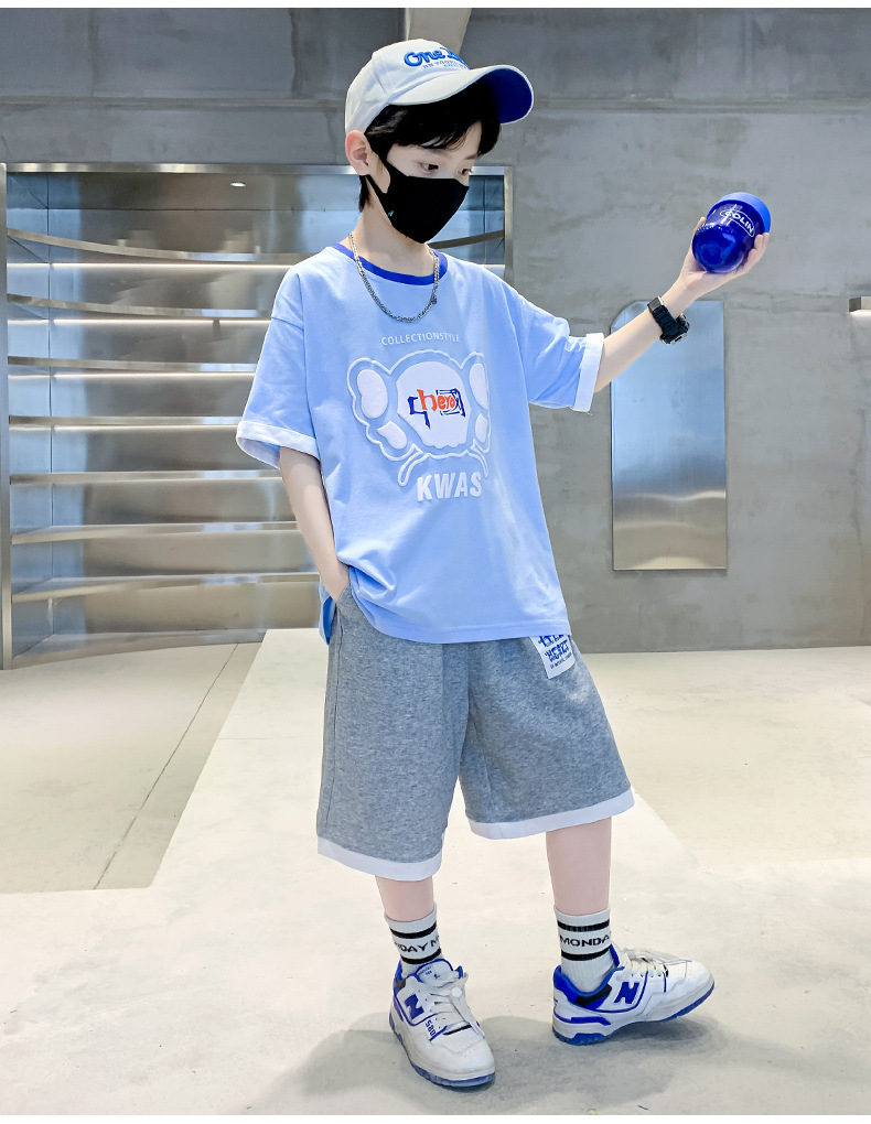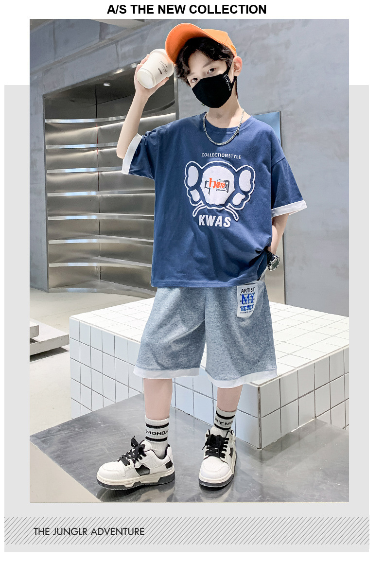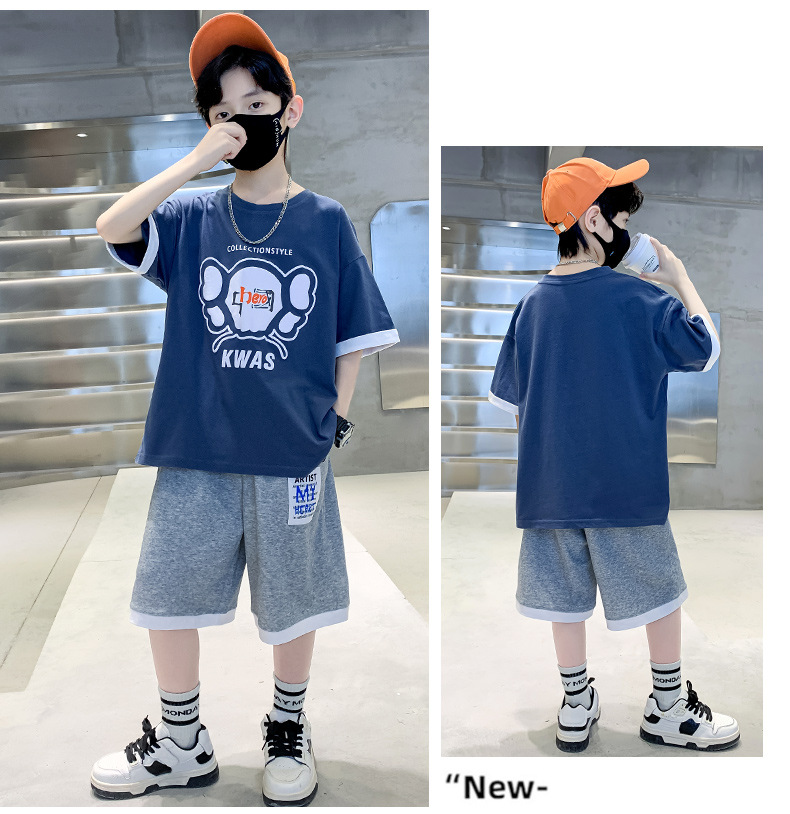 男童夏季套装纯棉印花韩版2023夏季新款中大童男孩短袖短裤卡通潮