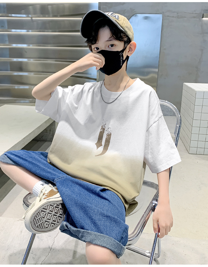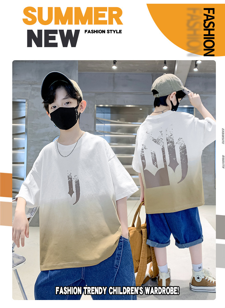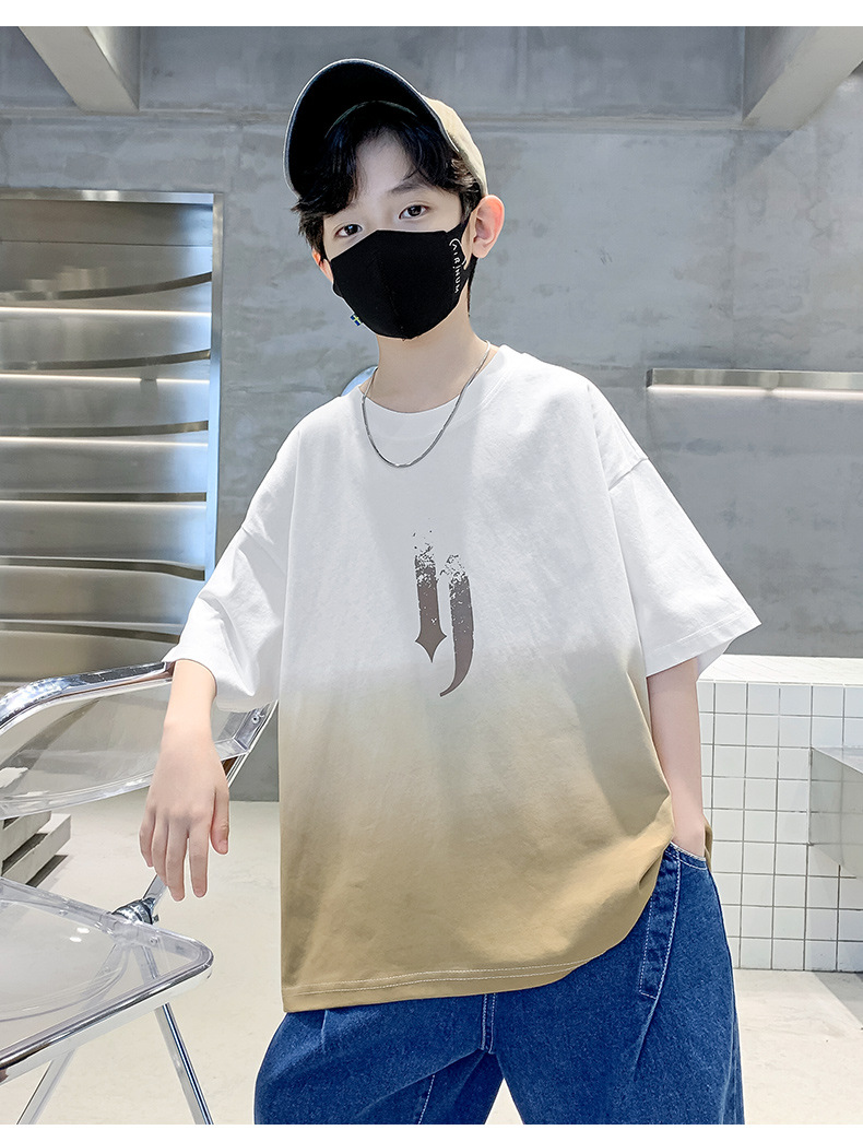 男童短袖T恤透气吸湿纯棉2023夏季新款中大童男孩短袖潮款渐变色