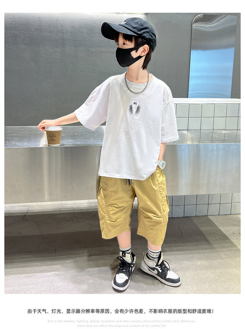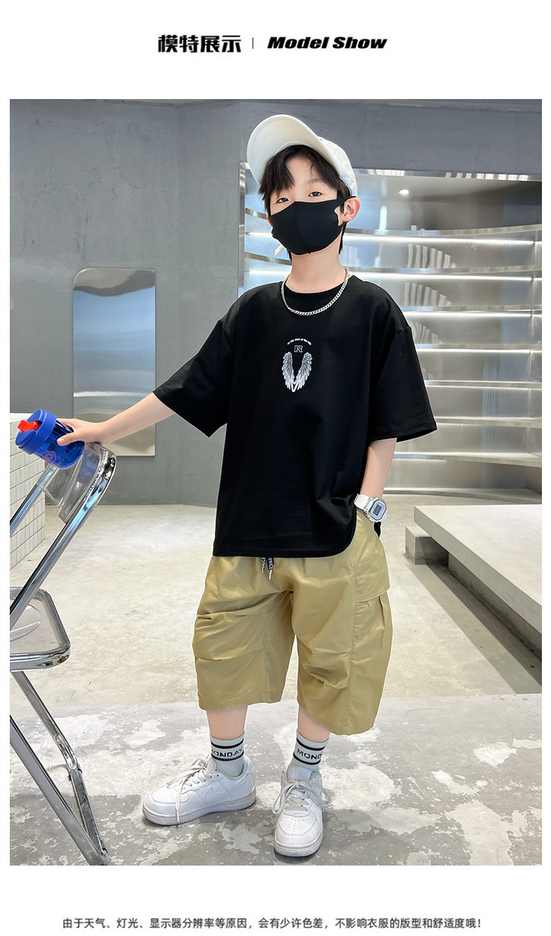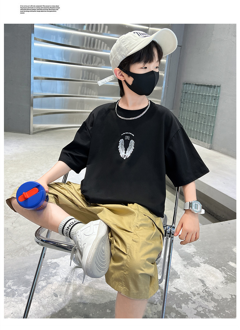 童装夏季纯棉套装天使翅膀2023夏季新款中大童男孩短袖短裤潮款