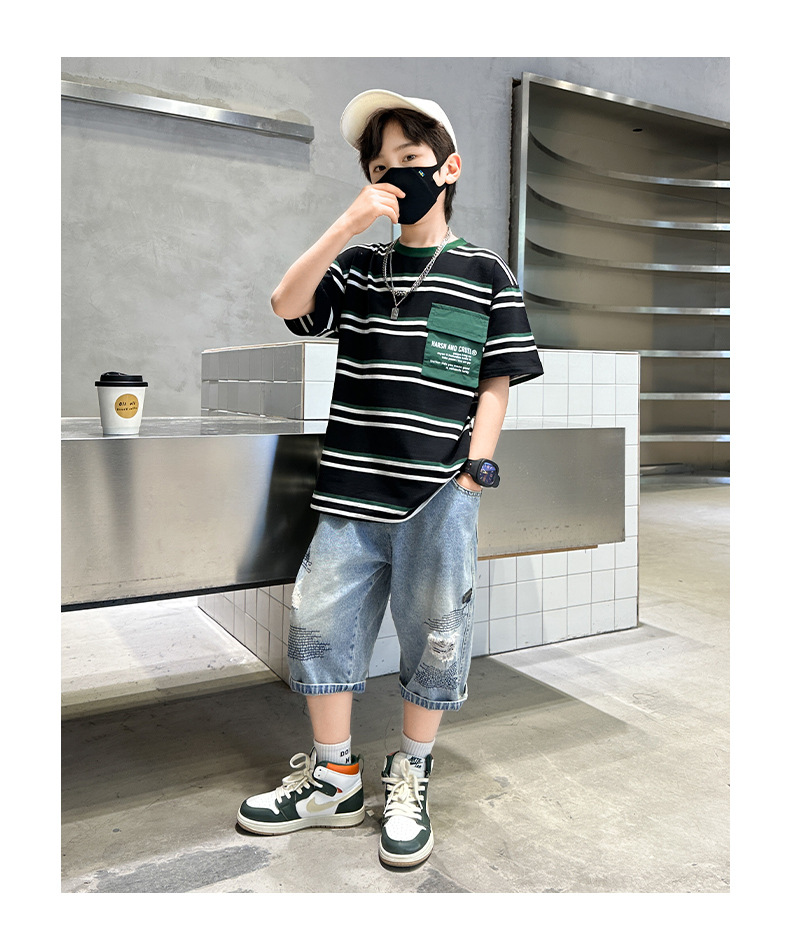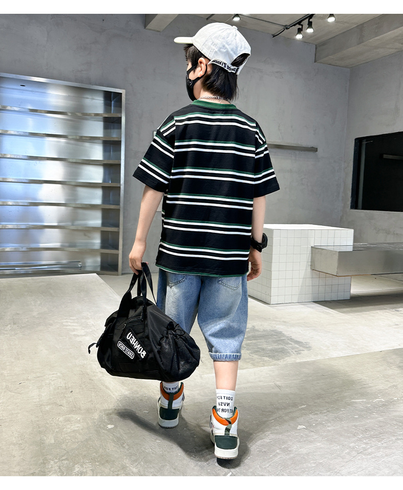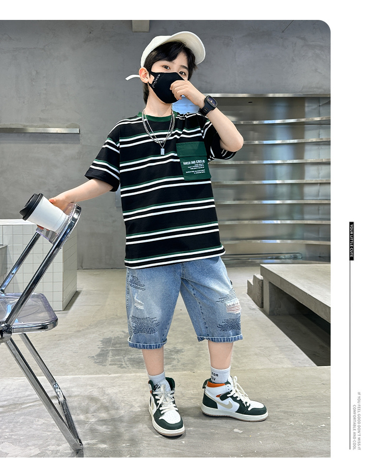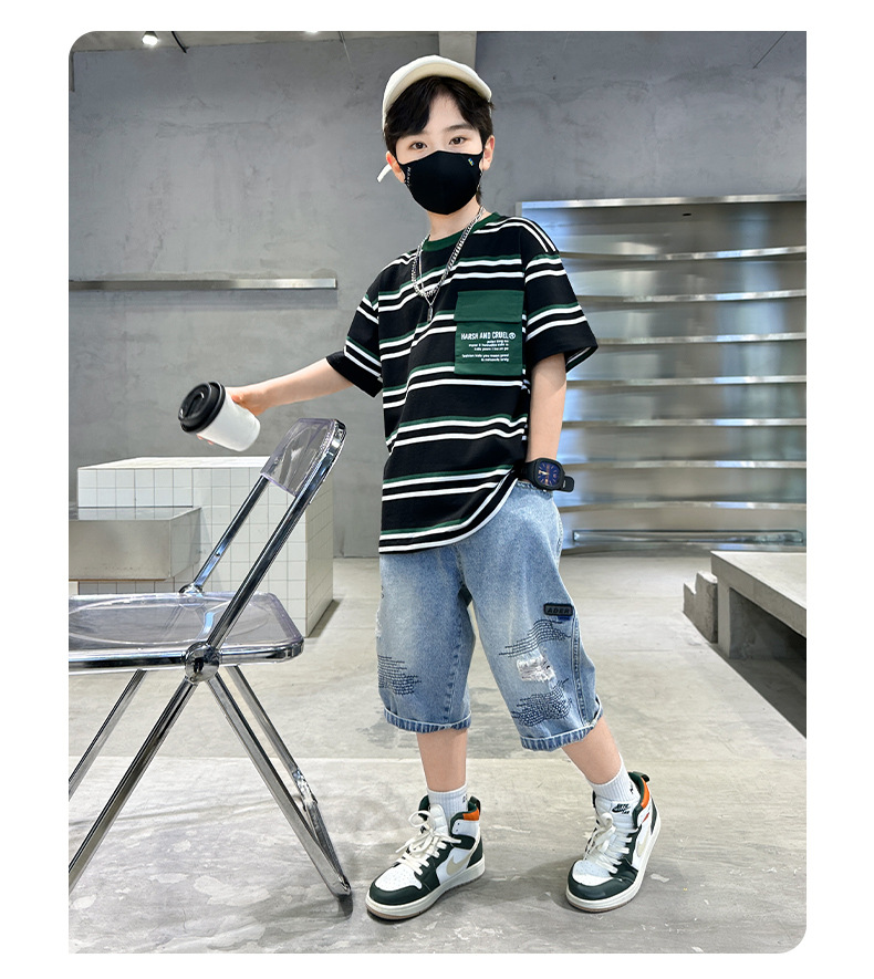 男童夏季套装纯棉短袖牛仔裤2023夏季新款中大童男孩短袖短裤潮款