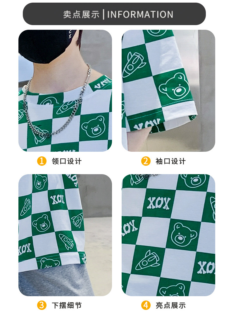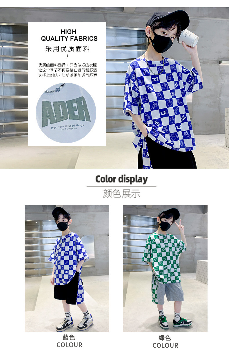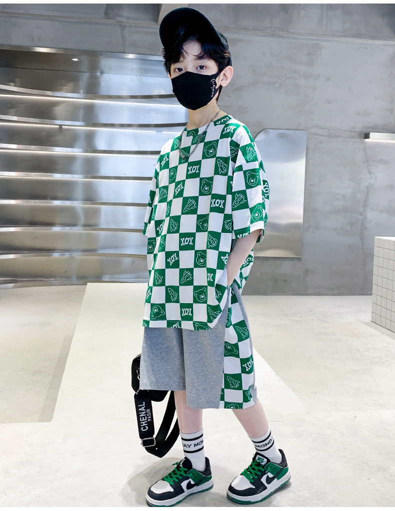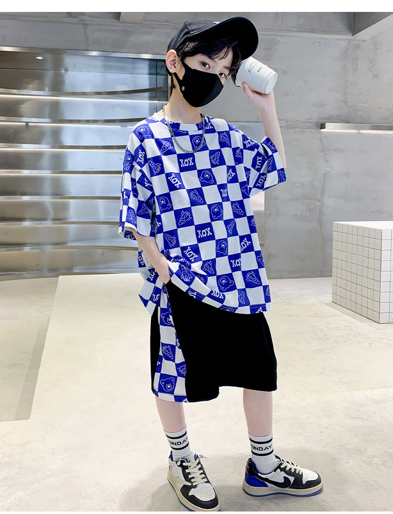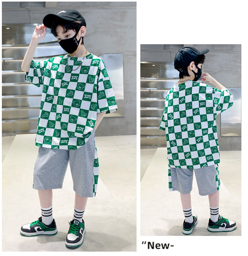 男童夏季套装纯棉短袖棋盘格2023夏季新款中大童男孩短袖短裤潮款