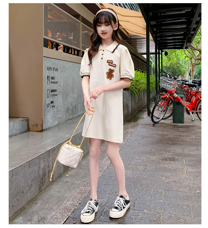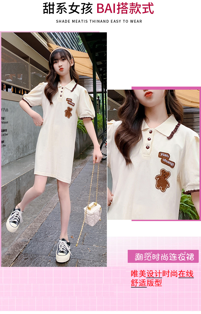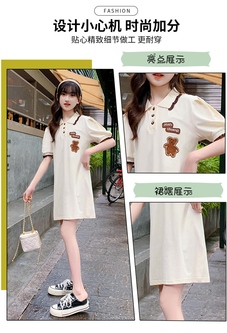 女童夏款T恤长款透气吸湿2023夏季新款中大童女孩polo裙可爱百搭