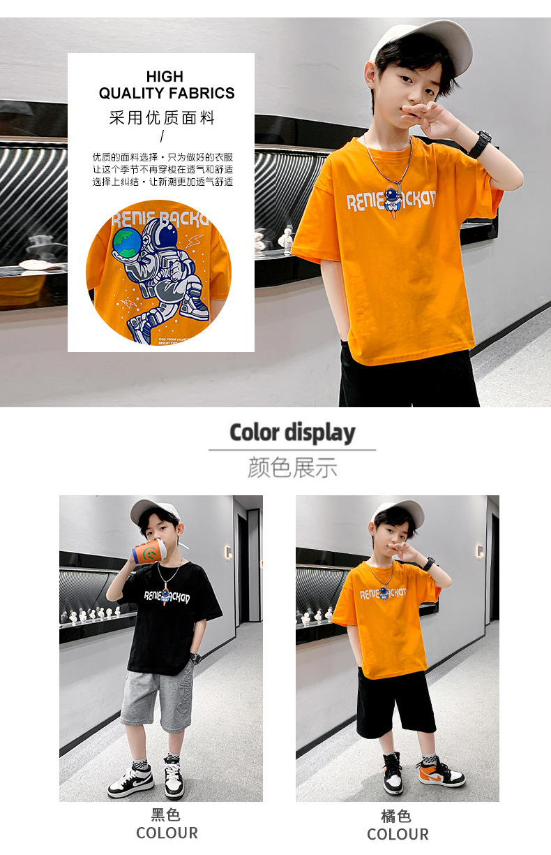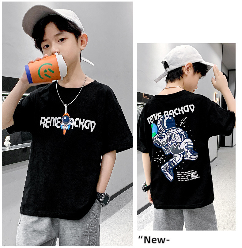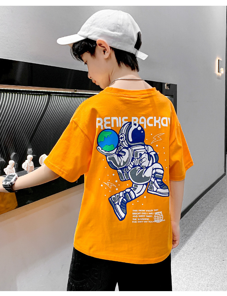 男童短袖T恤纯棉太空人潮款2023夏季新款中大童男孩短袖透气吸湿