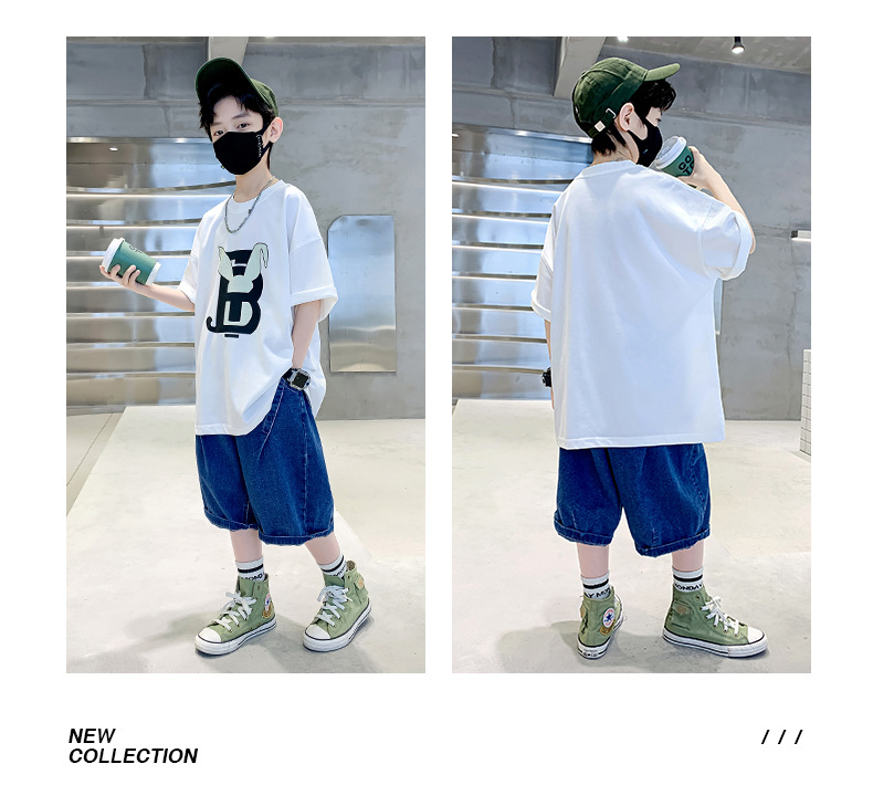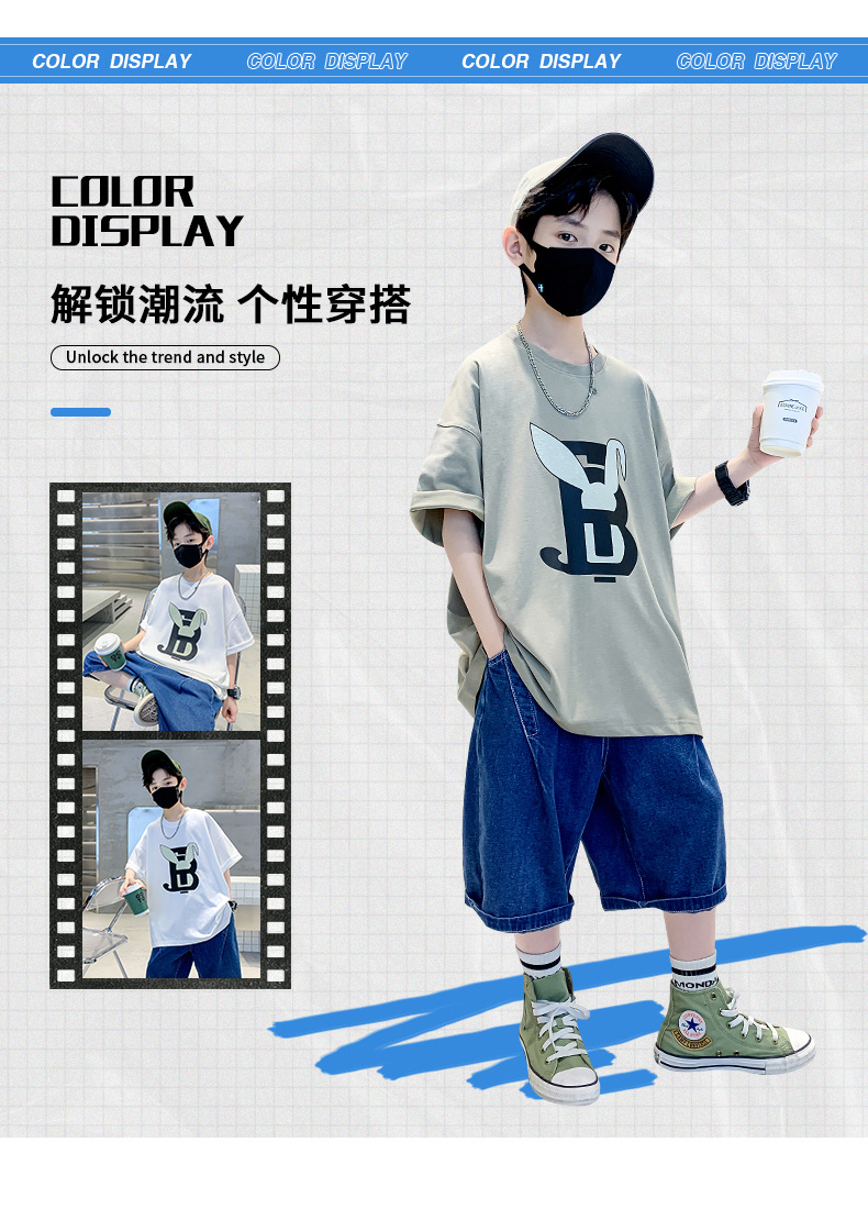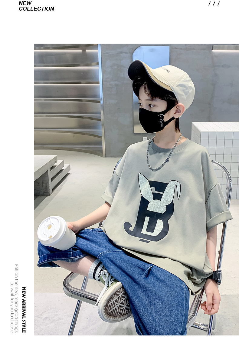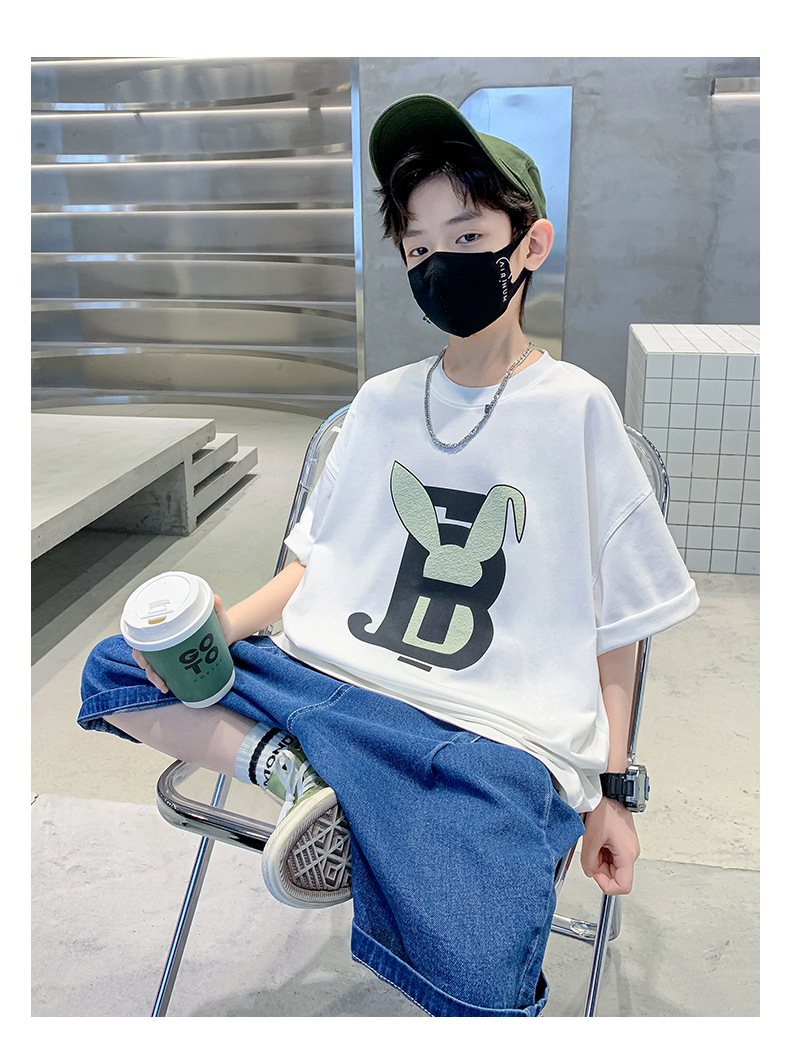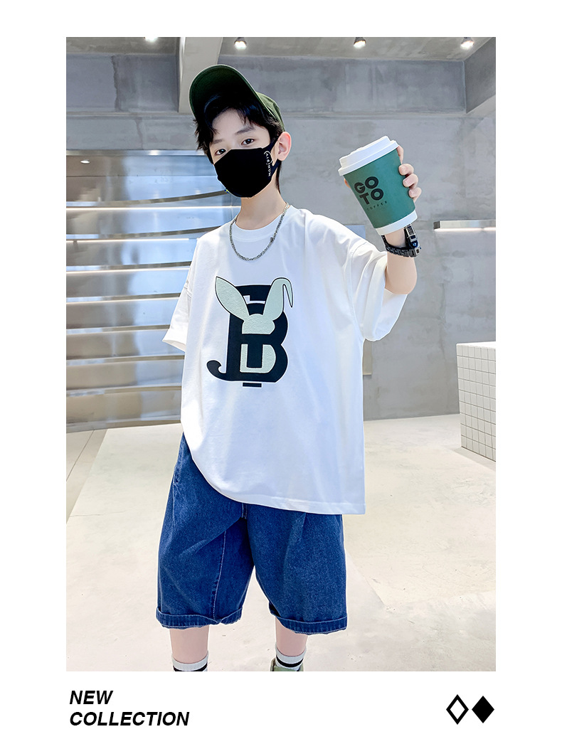 男童短袖T恤纯棉简约纯色2023夏季新款中大童男孩短袖透气吸湿