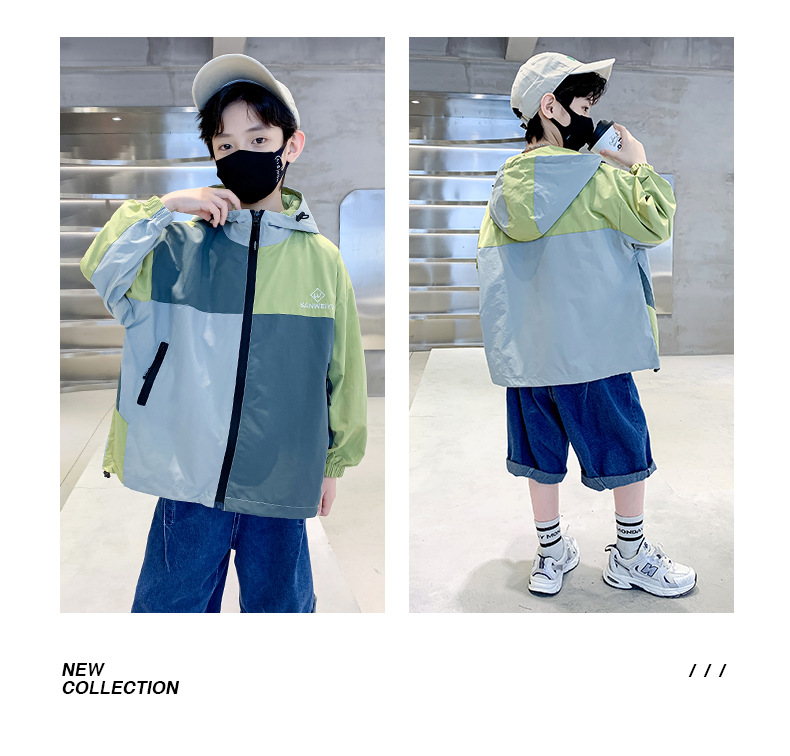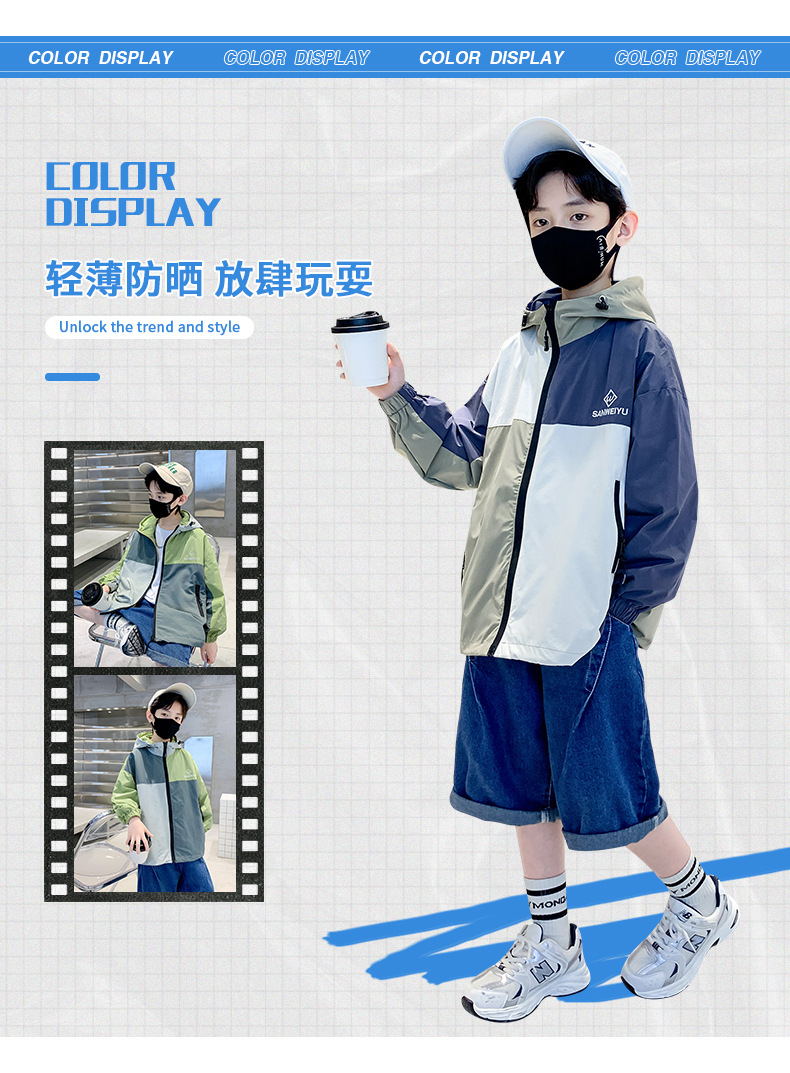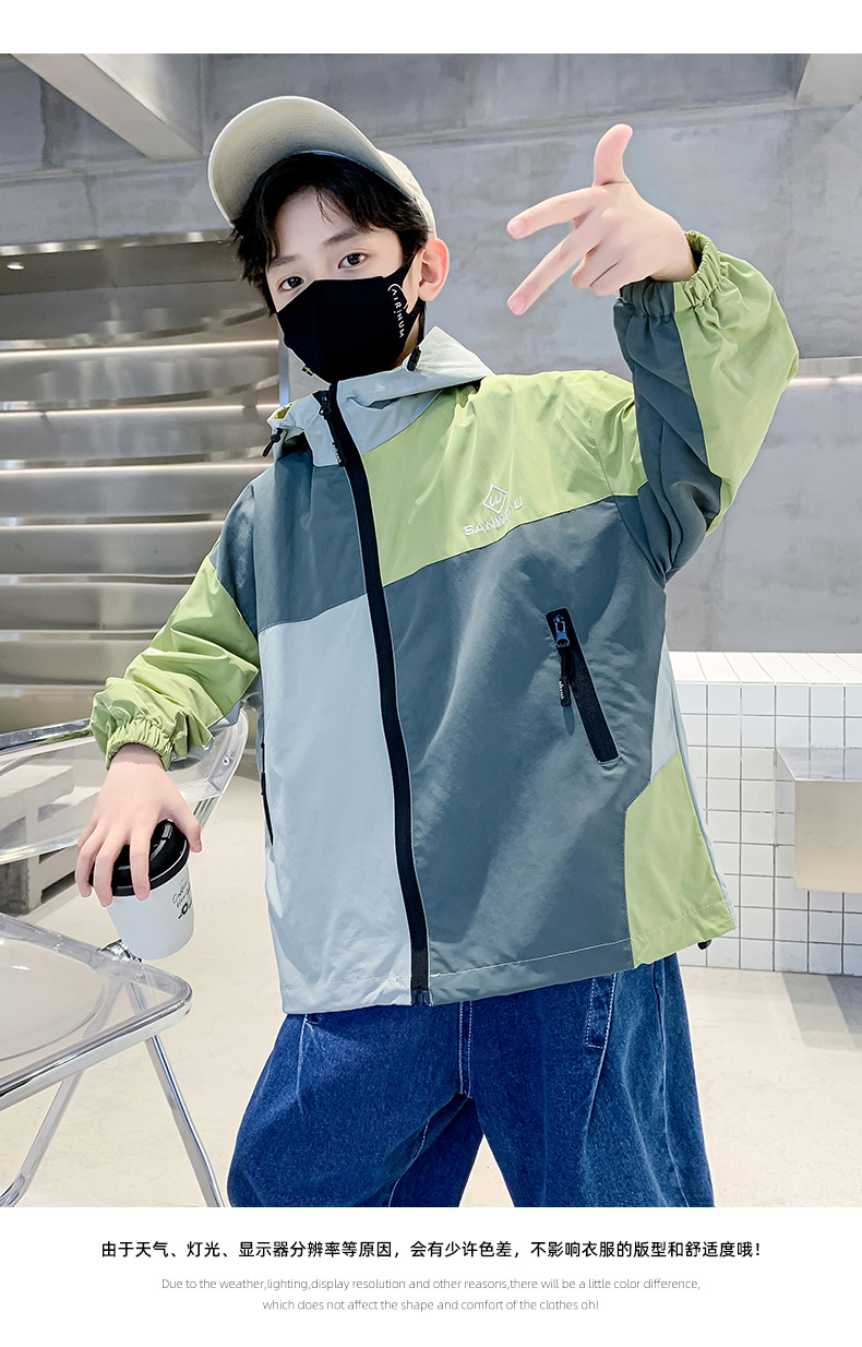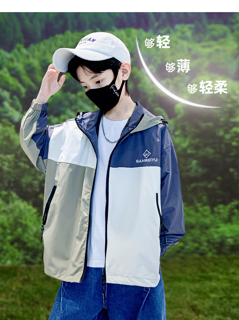 男童夏季防晒衣外套户外2023夏季新款中大童男孩防晒衣拼色潮款