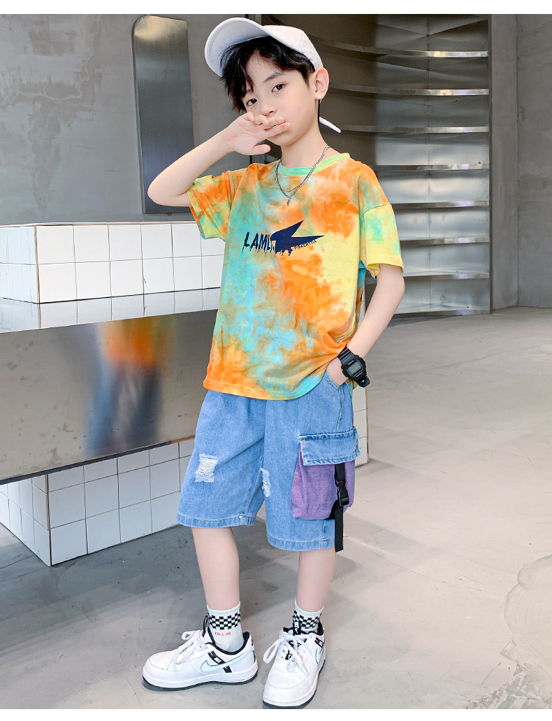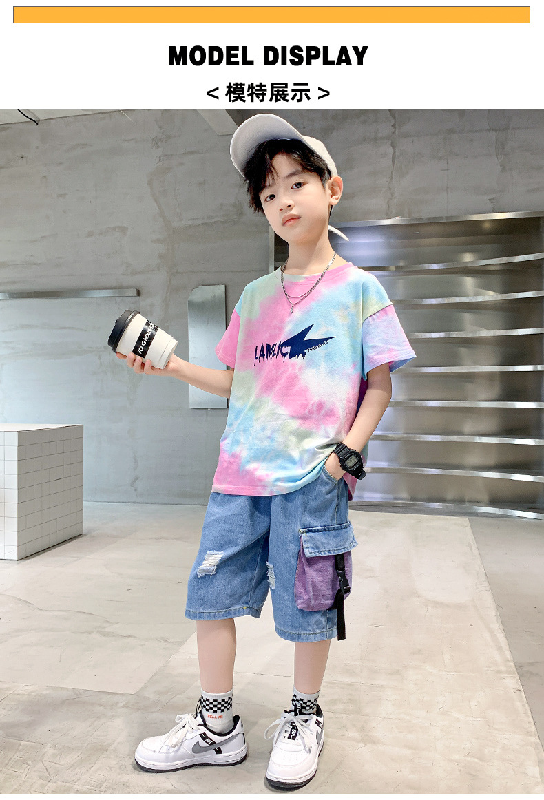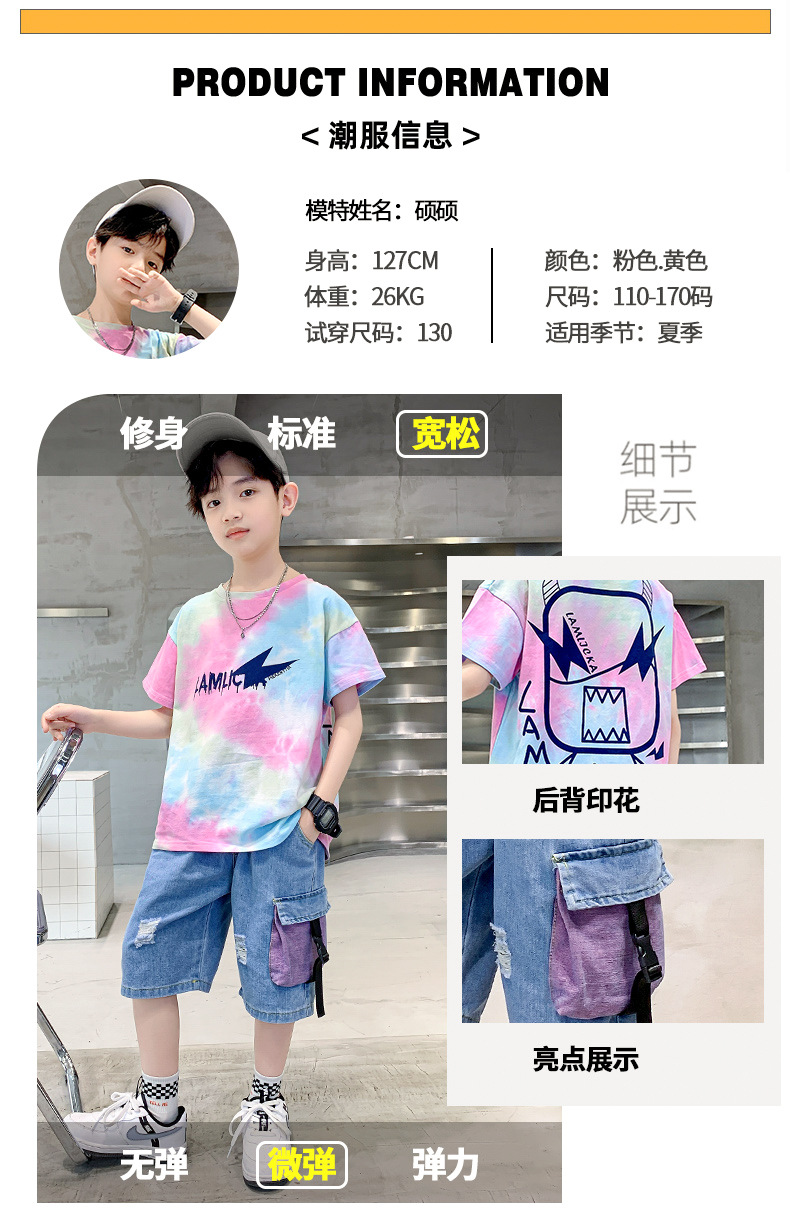 童装夏季套装纯棉卡通潮款2023夏季新款中大童男孩短袖牛仔短裤