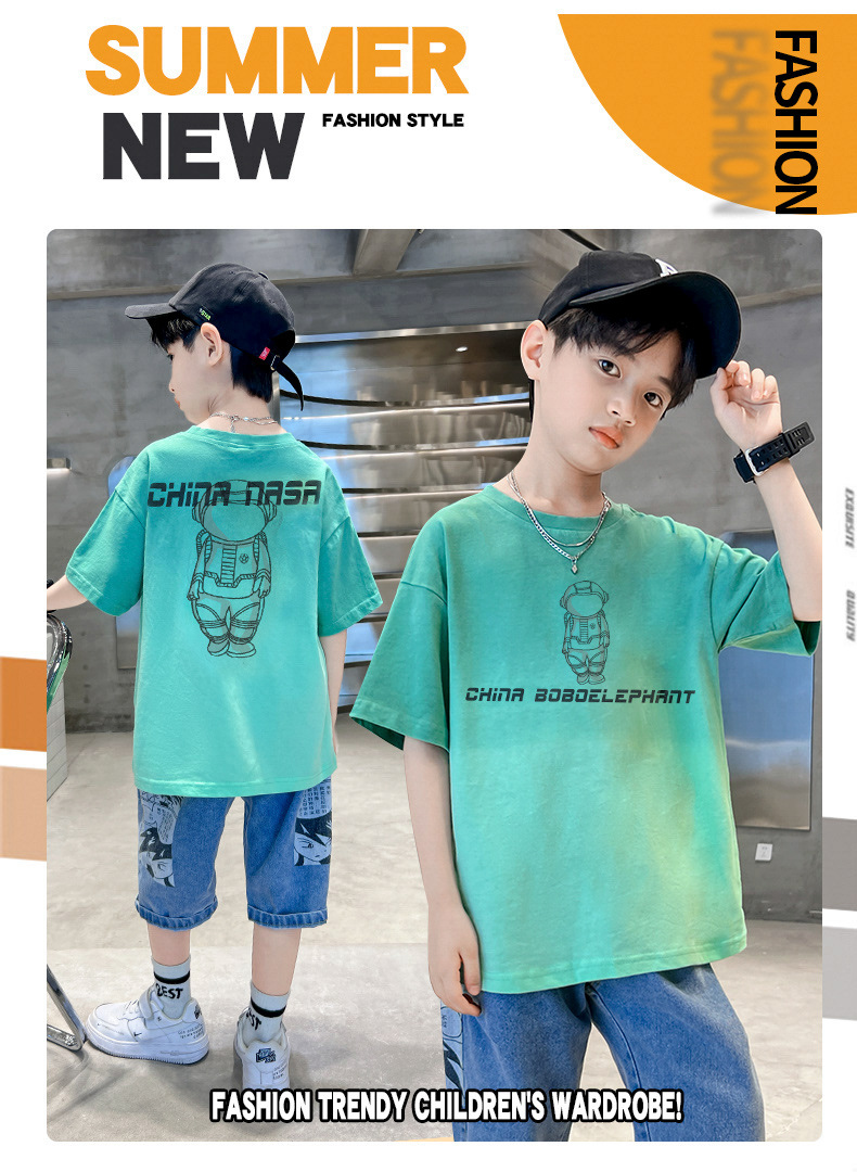 男童短袖T恤纯棉简约百搭2023夏季新款中大童男孩短袖透气吸湿