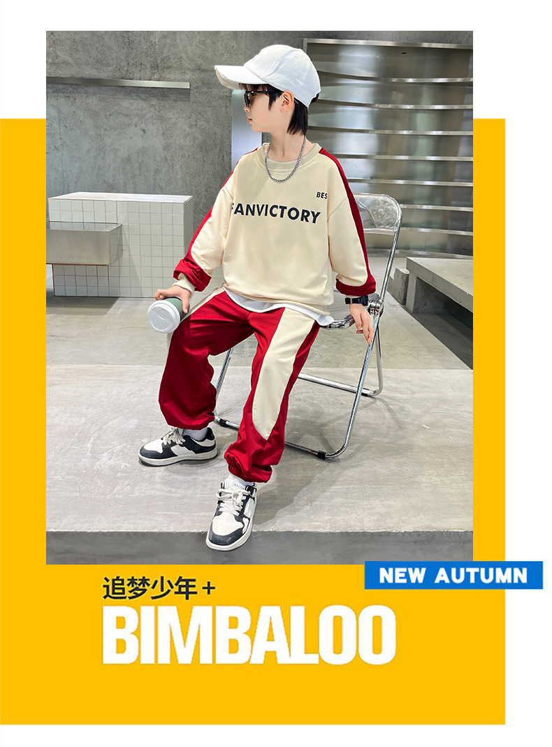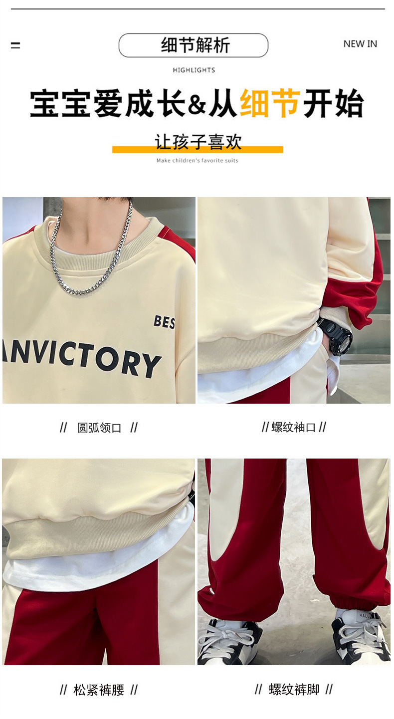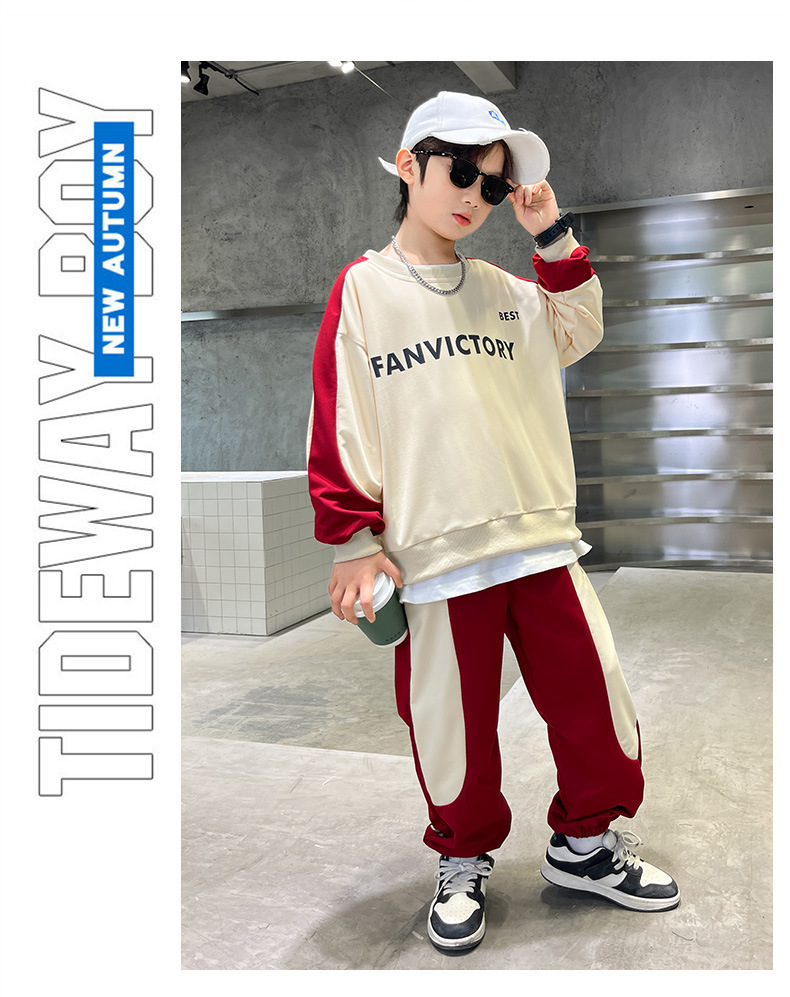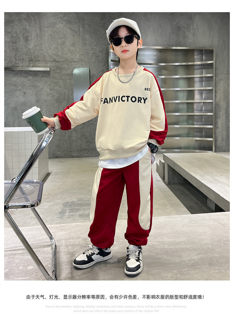 男童装套装纯棉拼色潮款2023春秋新款中大童男孩卫衣卫裤两件套