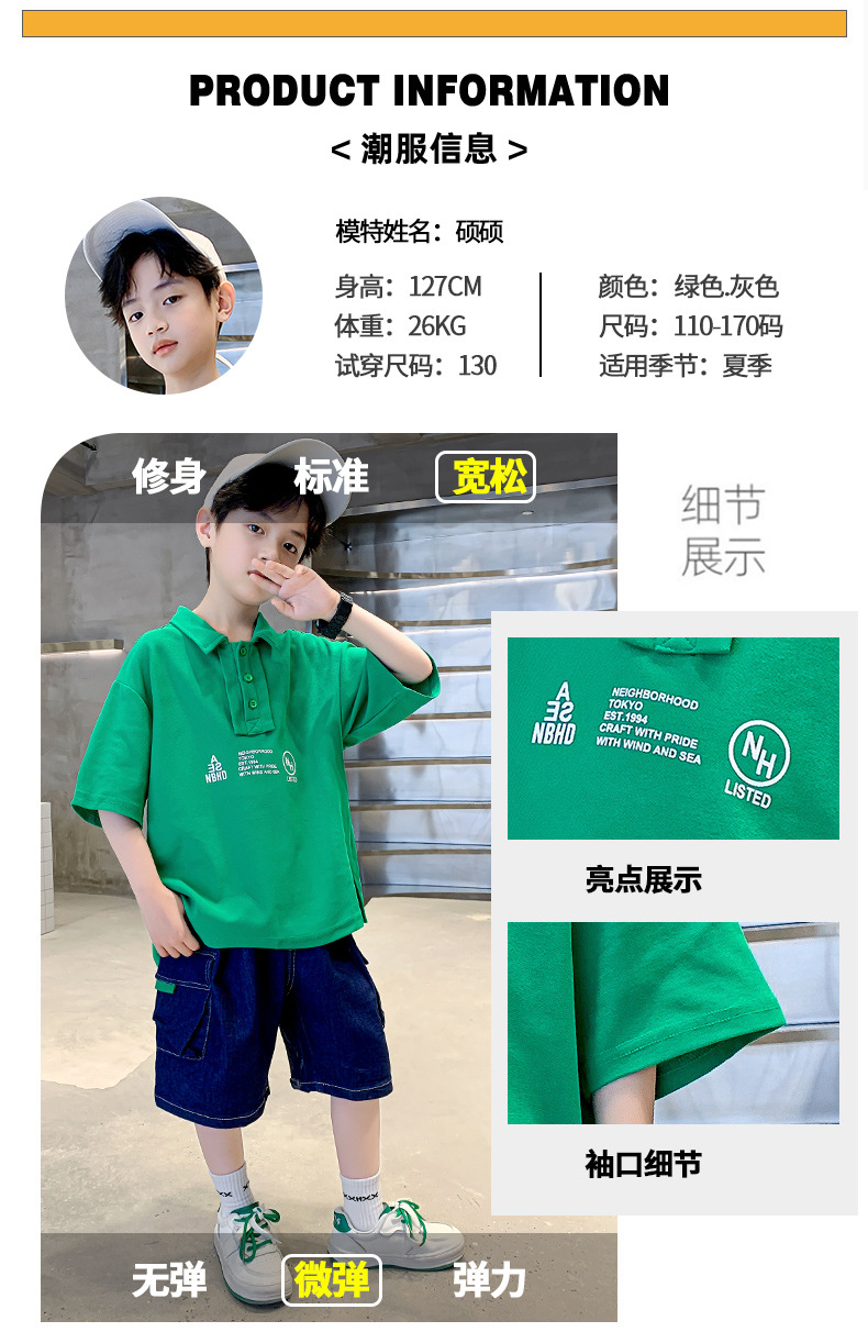男童装夏季套装纯棉polo衫牛仔两件套2023夏季新款中大童男孩夏装