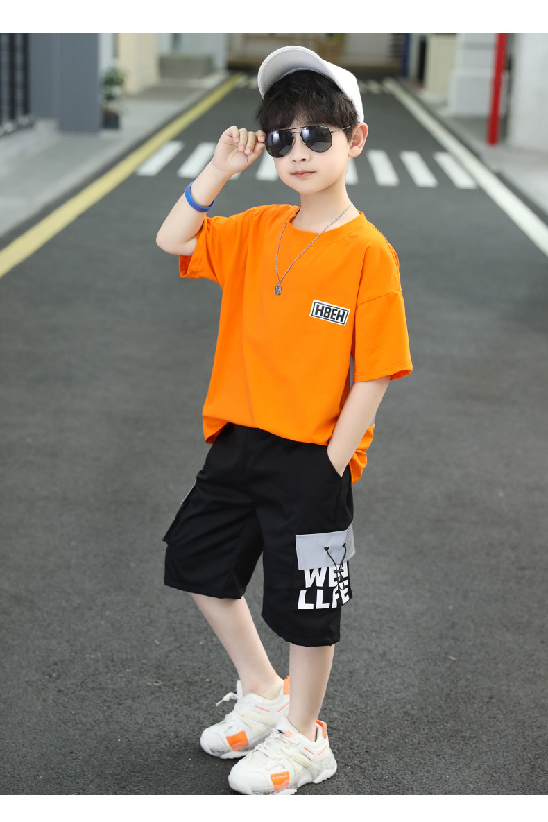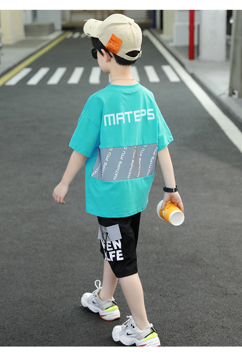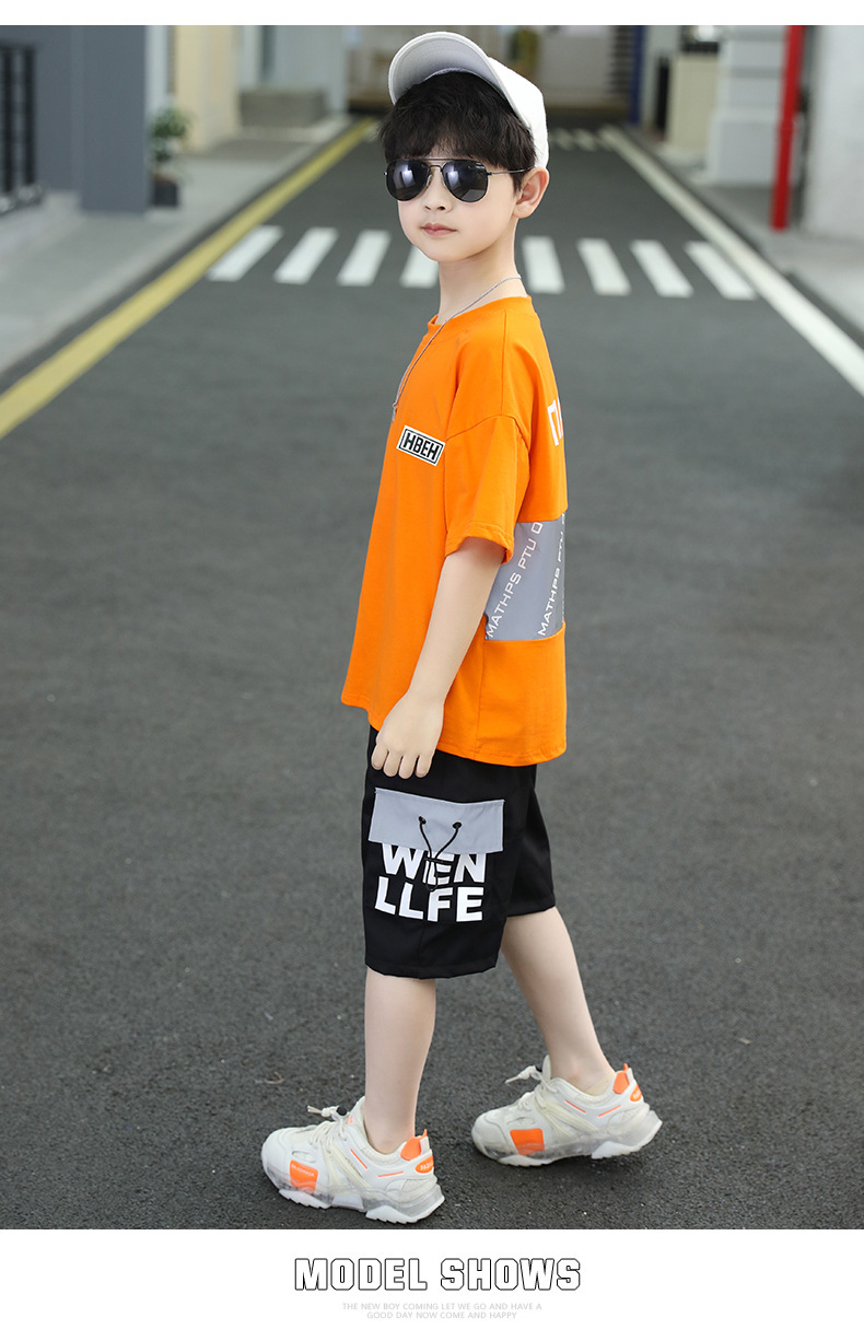 童装夏季套装棉简约潮款2023夏季新款中大童男孩短袖短裤反光潮款