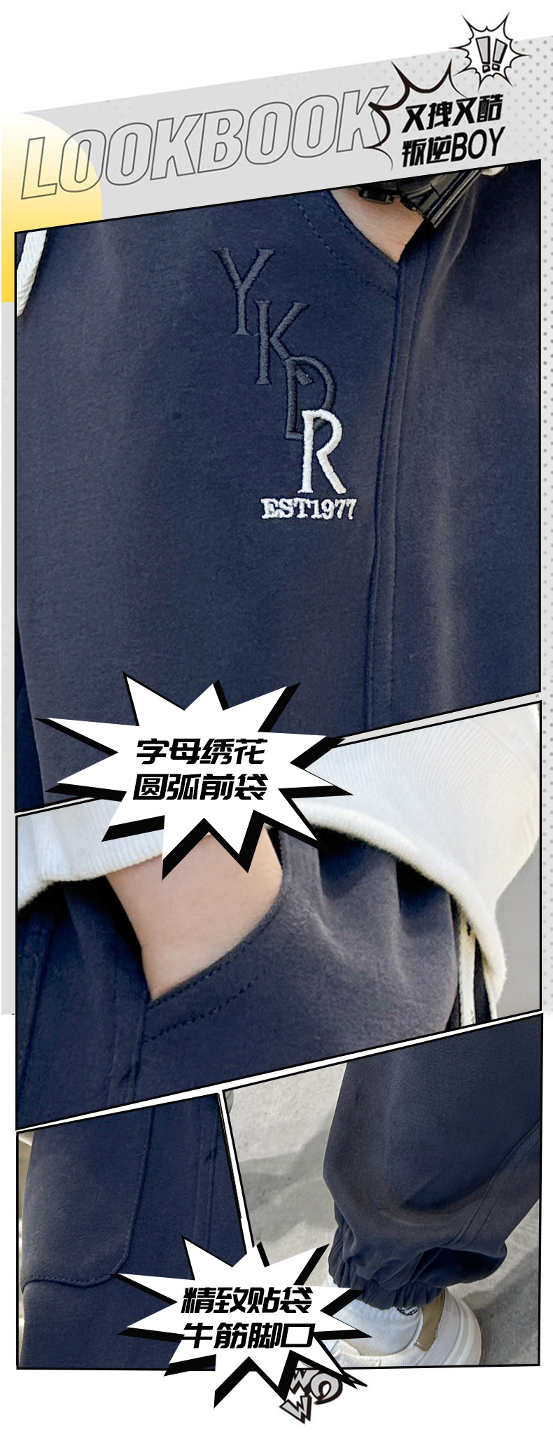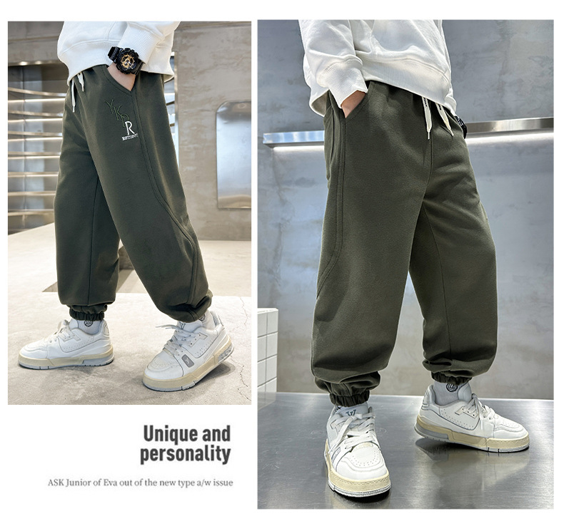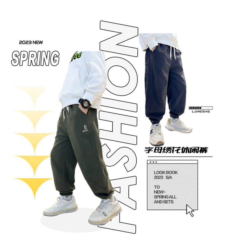 童装纯棉卫裤春装裤子简约百搭2023春季新款中大童男孩长裤炸街潮