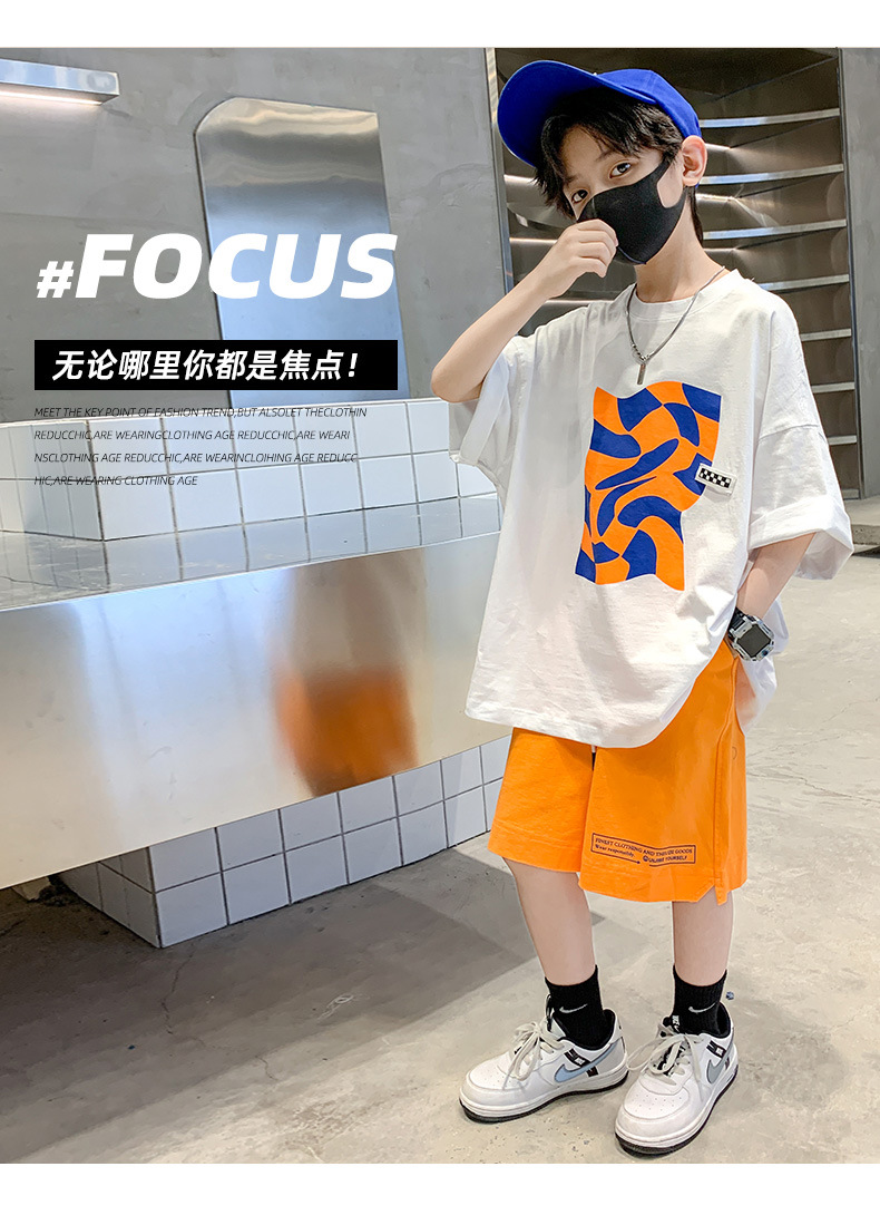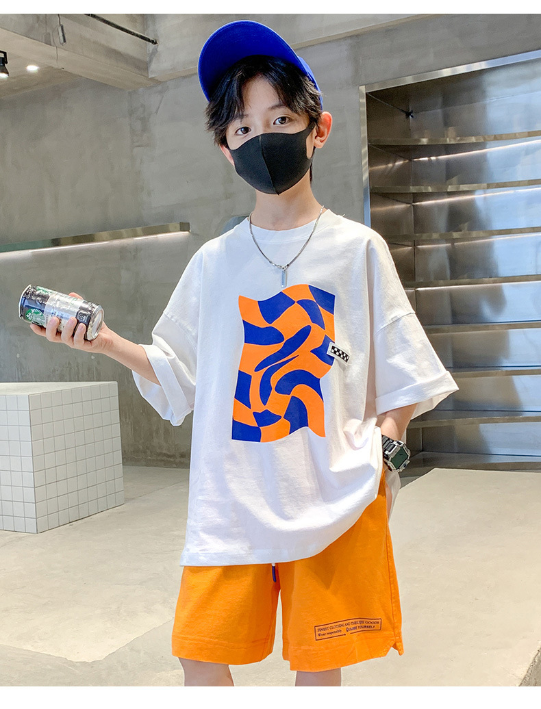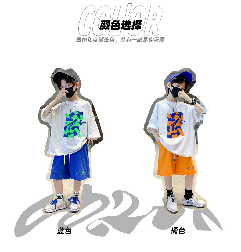 童装夏季套装纯棉撞色潮款2023夏季新款中大童男孩短袖短裤洋气