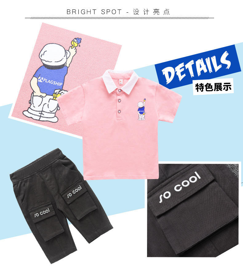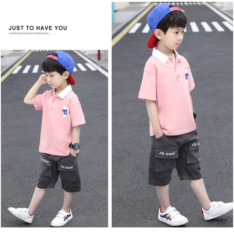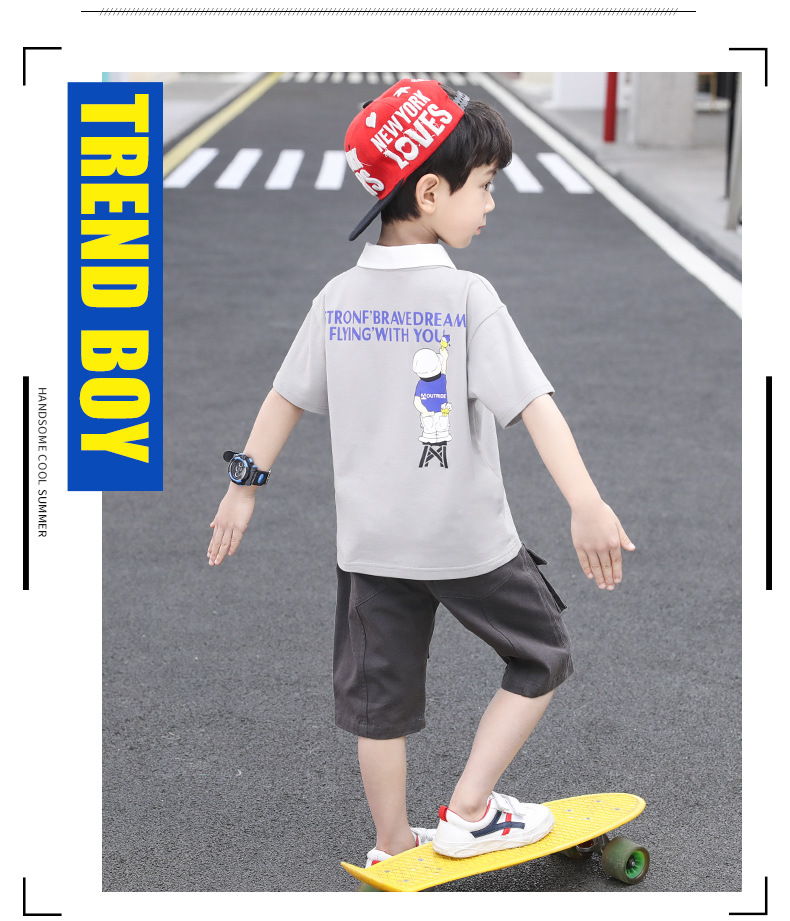 童装夏季纯棉套装polo衫潮款2023夏季新款中大童男孩短袖短裤简约