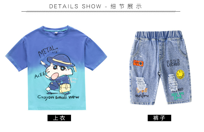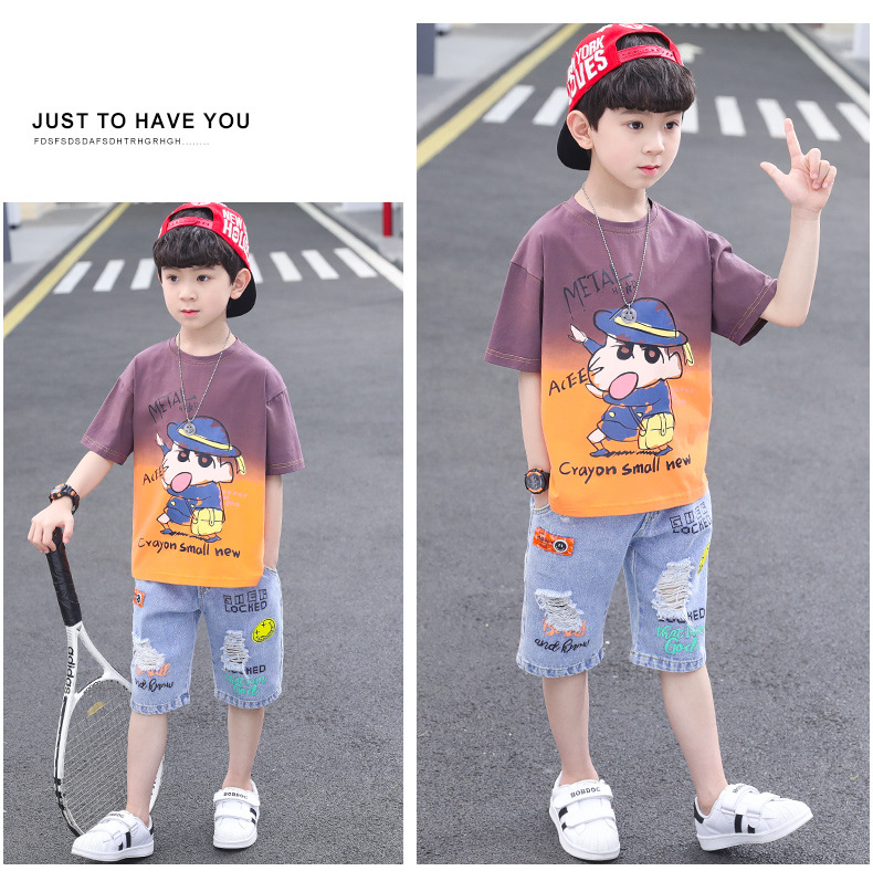 童装夏季纯棉套装2023夏季新款中大童男孩短袖短裤卡通潮款