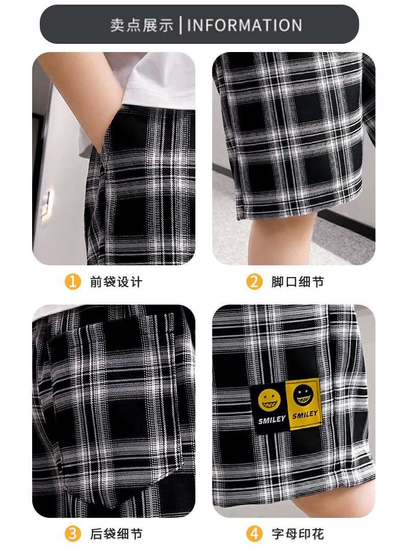 男童短裤夏季纯棉吸湿透气2023夏季新款中大童男孩格子五分裤百搭