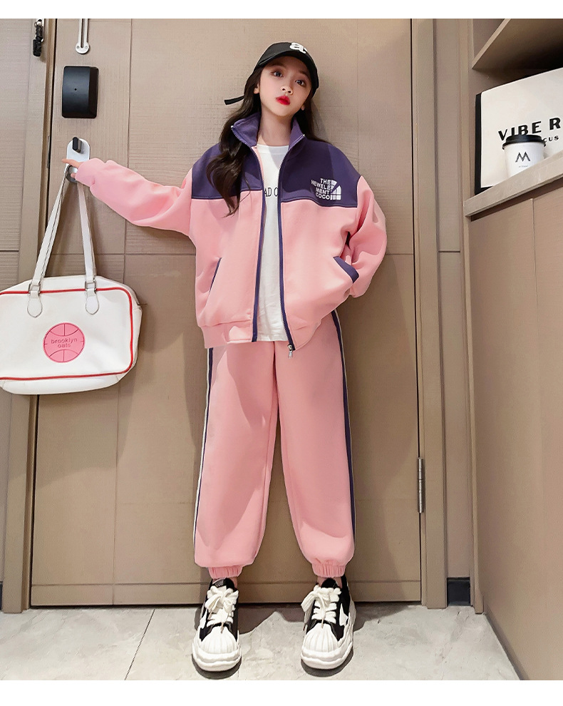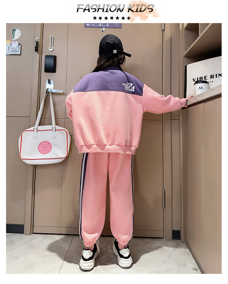 童装套装女款拼色刺绣纯棉2023春季新款中大童女孩运动套装潮流款