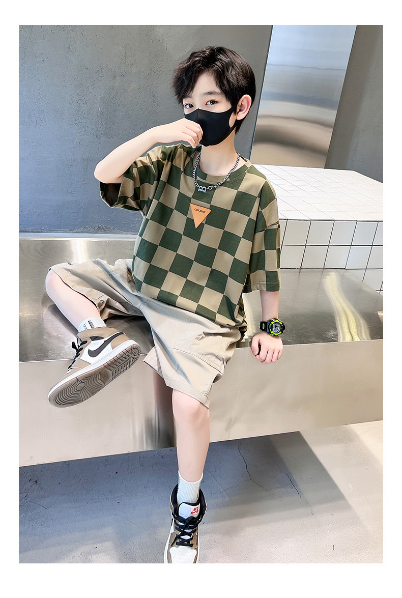 童装夏季套装纯棉棋盘格2023夏季新款中大童男孩短袖短裤厂家直销