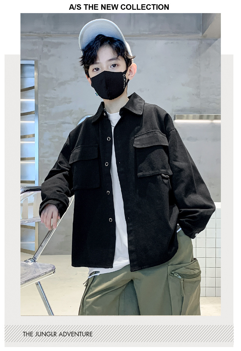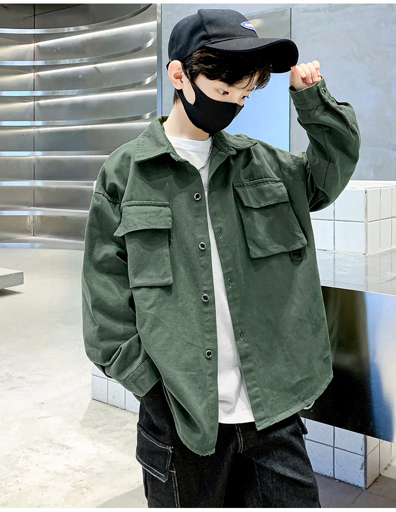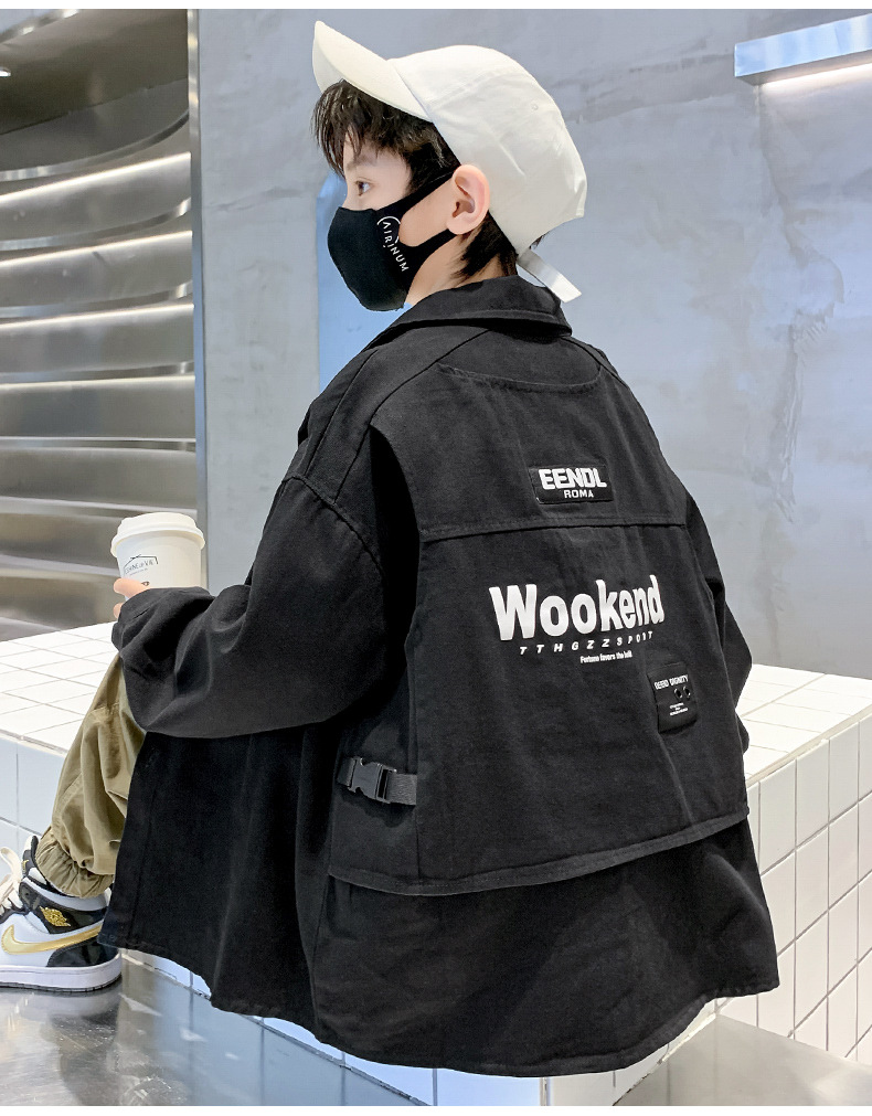 童装外套纯棉纯色百搭上衣2023春季新款中大童男孩夹克拼色潮款