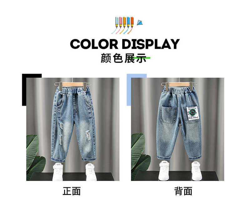 童装牛仔裤破洞潮款百搭2023春季新款中大童男孩长裤舒适炸街潮款