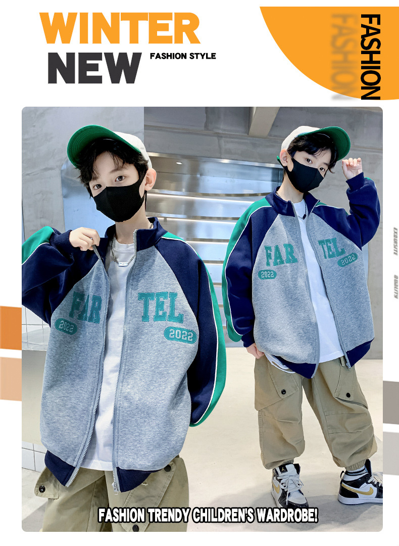 童装外套纯棉拼色潮款棒球服2023春季新款中大童男孩夹克拼色潮款