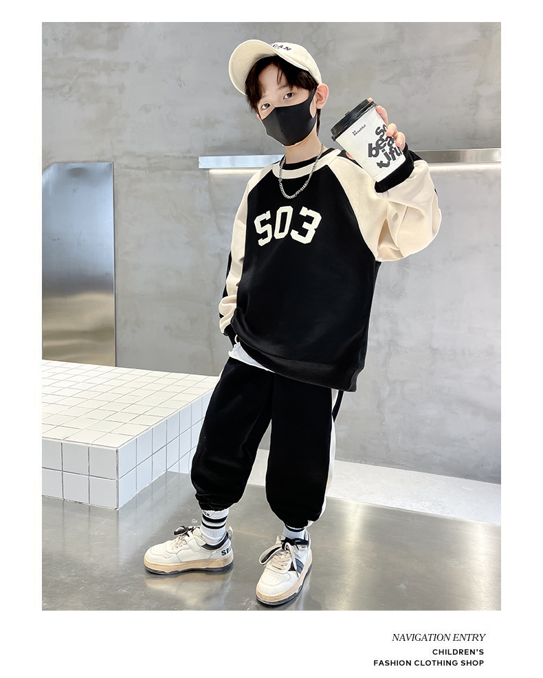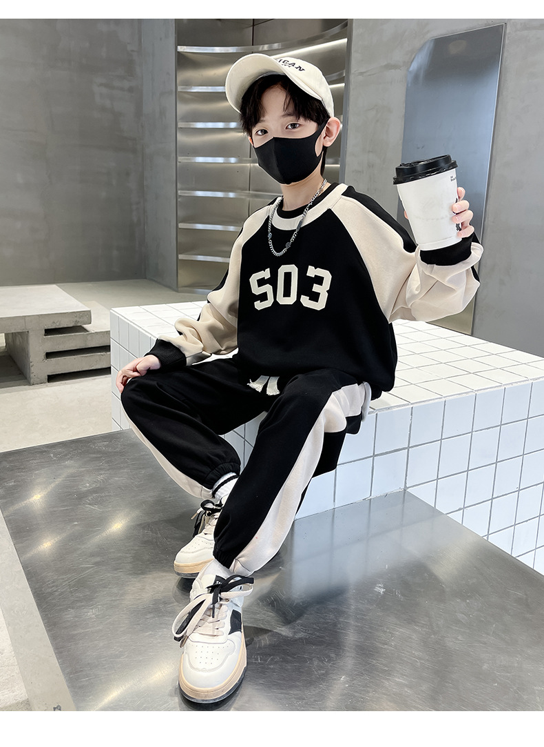 男童春款套装纯棉2023春季新款中大童男孩卫衣卫裤两件套纯棉炸街