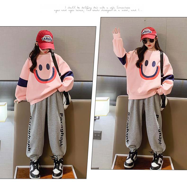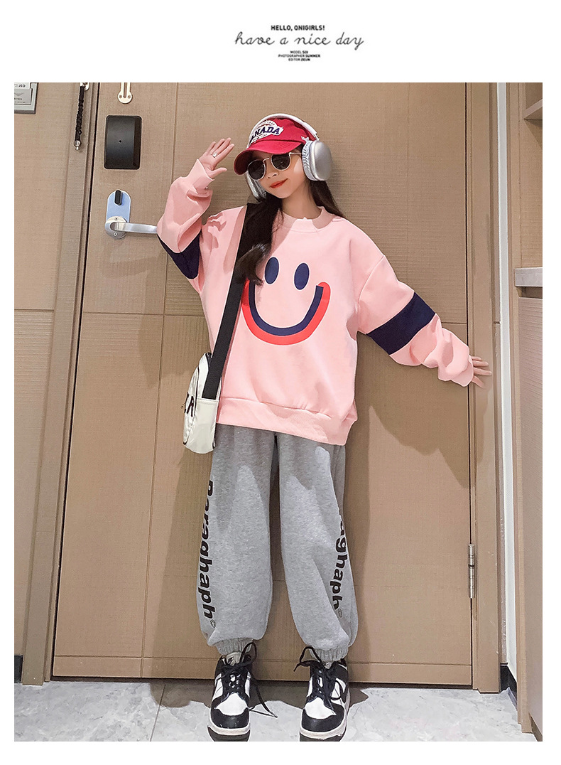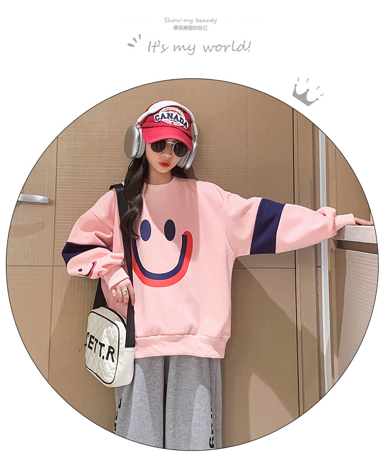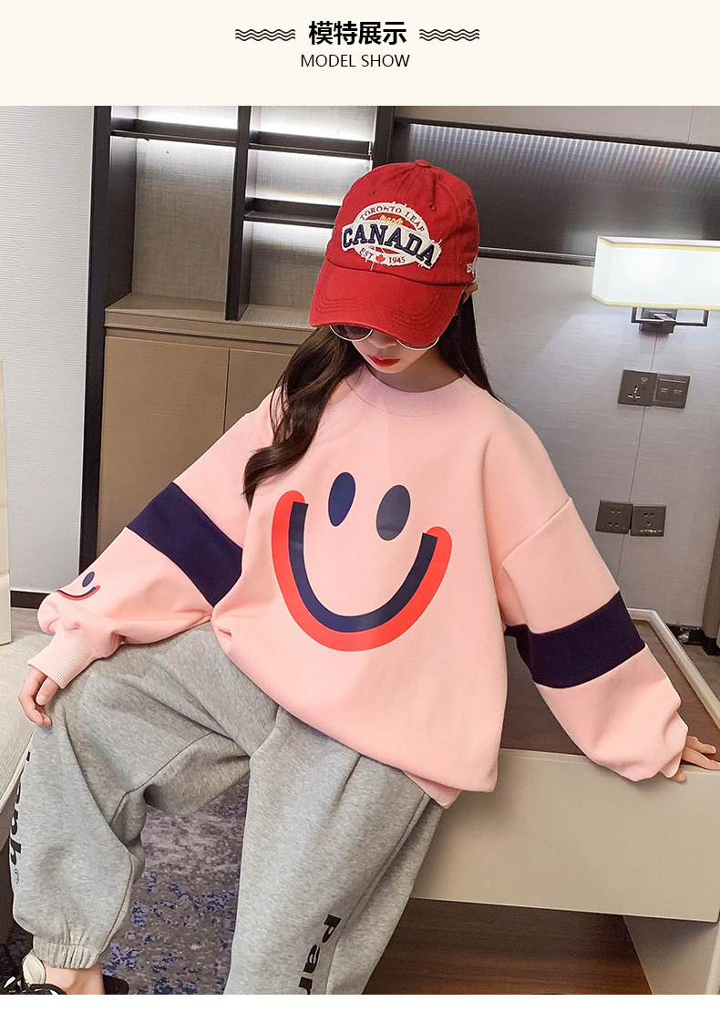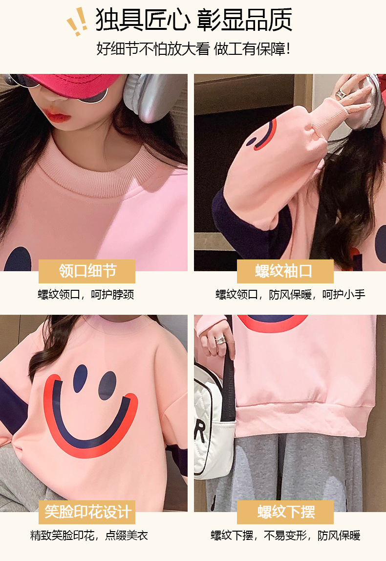 女童春款卡通卫衣纯棉2023年春季新款中大童女孩潮款卫衣笑脸潮款